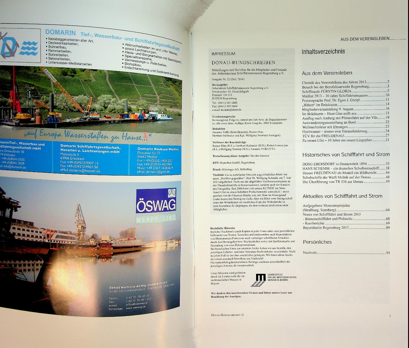 Collective: 2014 Schiffahrtsmuseum Regensburg, softcover, 94 pages, illustrated. with many interesting articles about shipping on the Danube (Donau). In very good condition. German language