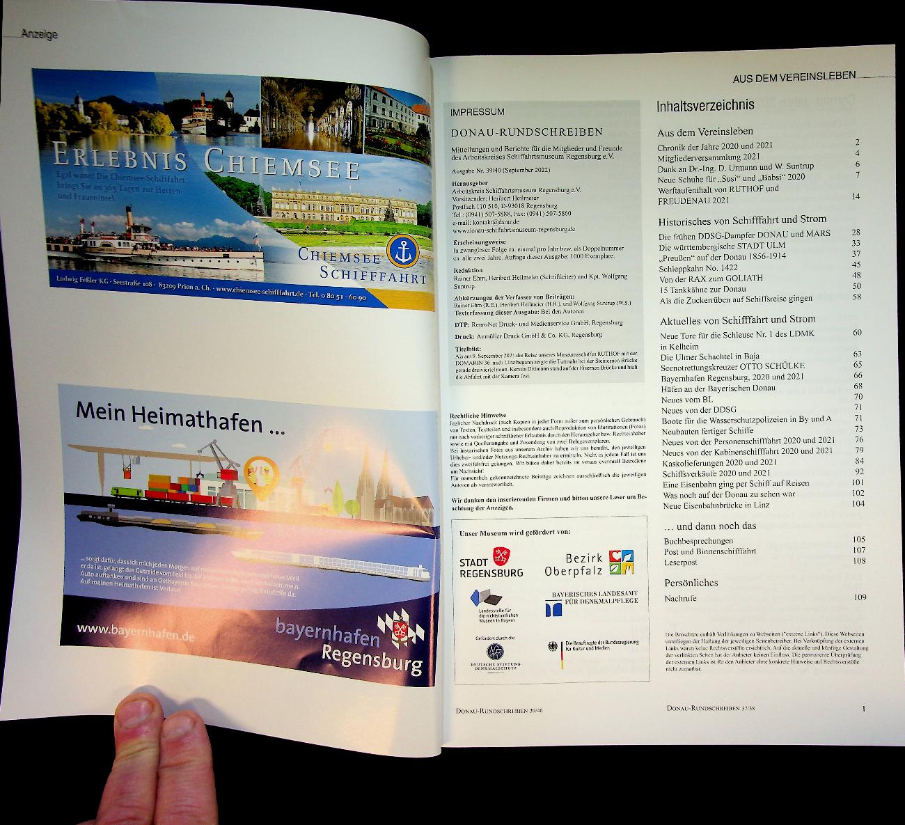 Collective: 2022 Schiffahrtsmuseum Regensburg, softcover, 111 pages, illustrated. with many interesting articles about shipping on the Danube (Donau). In very good condition. German language