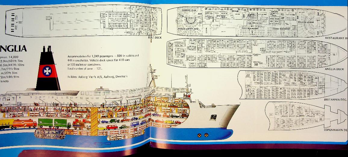 DFDS: 1978 Copenhagen, softcover, 14 pages, with photos and information. Brochure for the new Ferry. In very good condition