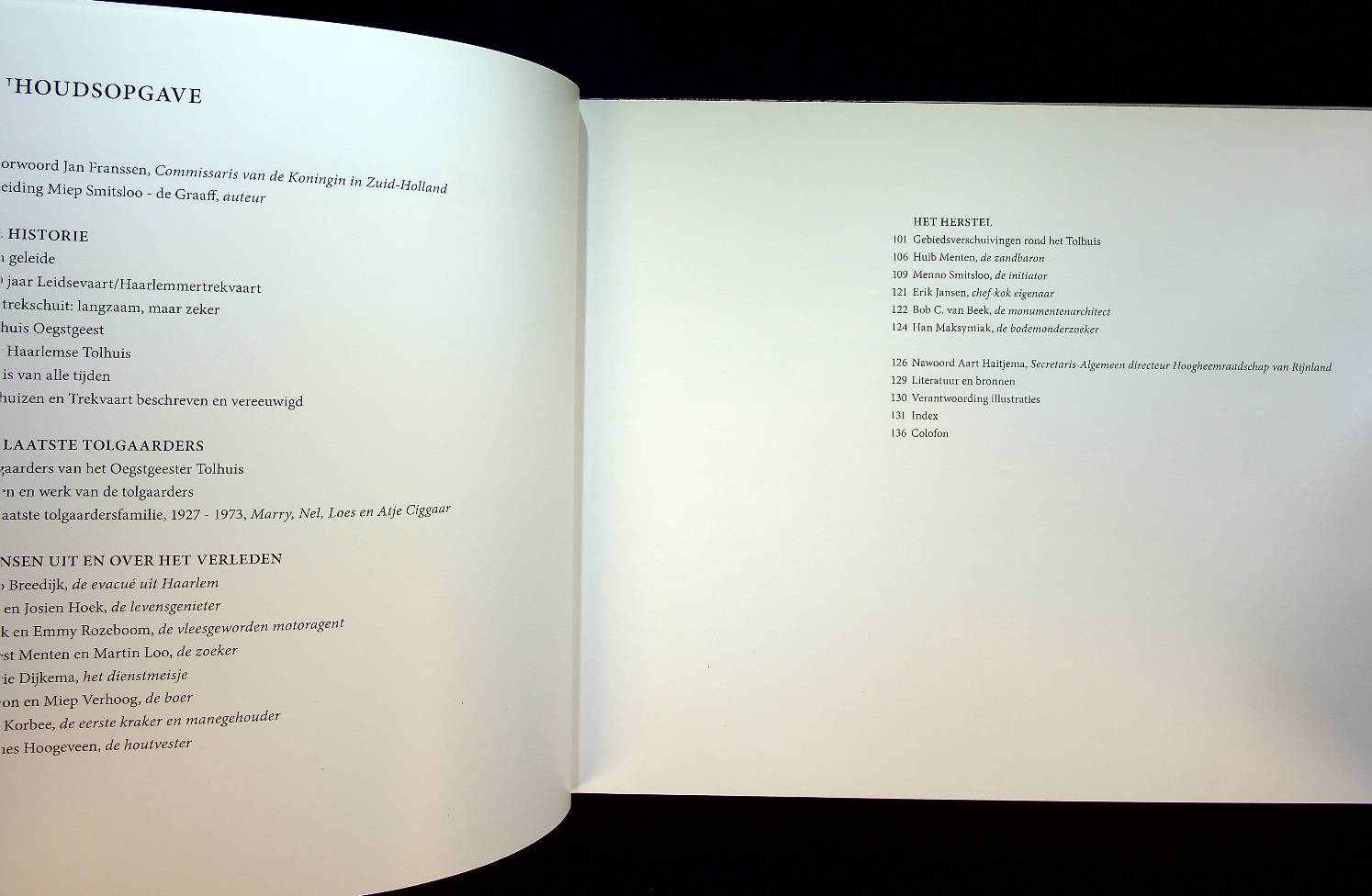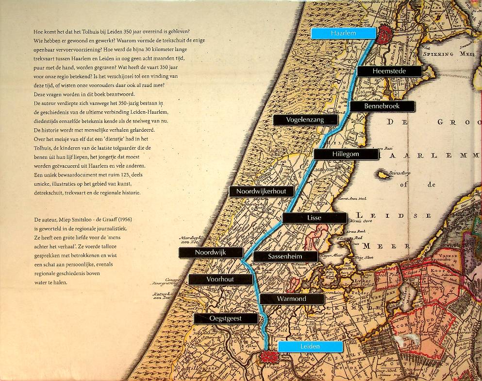 Smitsloo-de Graaff, M: 2007, Leiden, hardcover 136 blz., geschiedenis van 350 jaar Leidsevaart / Haarlemmertrekvaart. “Tussen Tol en Trekvaart” van Miep Smitsloo-de Graaff is een rijk geïllustreerde geschiedenis van de Haarlemmertrekvaart (Leidsevaart) en vooral het Tolhuis in Oegstgeest, het enige overgebleven tolhuis langs de route tussen Haarlem en Leiden, met aandacht voor trekschuitvervoer, tolheffing en de restauratie van het 17e‑eeuwse monument door de familie Smitsloo. Het boek combineert historische context over de 350 jaar oude infrastructuur met persoonlijke verhalen en regionale geschiedenis ISBN 9789081158015 In zeer goede staat