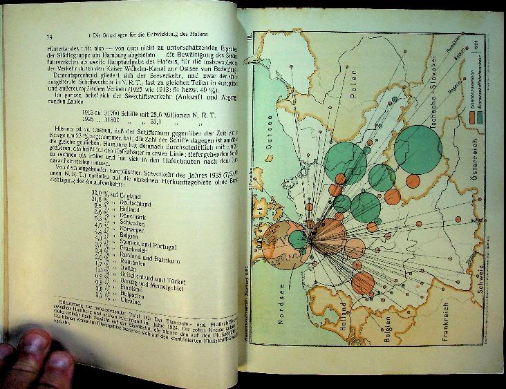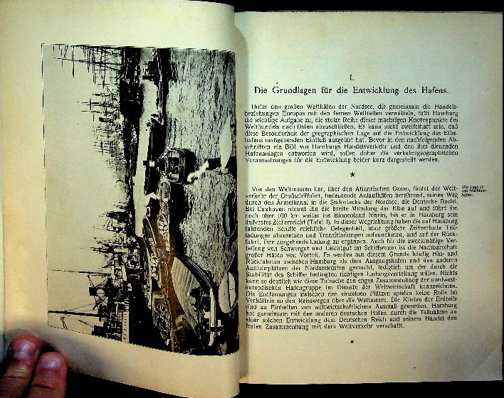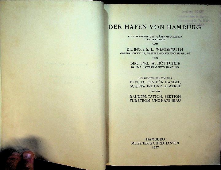 Wendemuth, Dr.L and Bottcher, W: 1927 Hamburg, hardcover 240 pages, illustrated. A concise, photo-rich historical and technical survey, Der Hafen von Hamburg by Ludwig Wendemuth and Walter Böttcher presents the port’s geography, facilities, governance, and economic role, positioning Hamburg among Europe’s leading harbors through detailed chapters on infrastructure, traffic, and comparative competitiveness with neighboring ports. It combines topographic overviews with operational data and development policy to explain how the Elbe’s layout, rail links, and free-port regime shaped Hamburg’s growth into a major universal port. In very good condition. German language