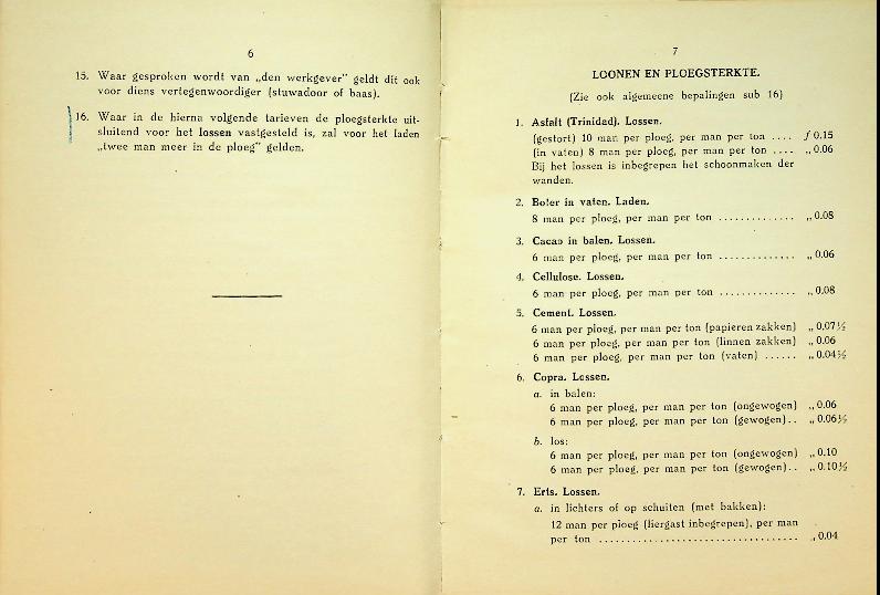 Scheepvaart Vereniging Noord, bepalingen en tarieven stukloon 1922