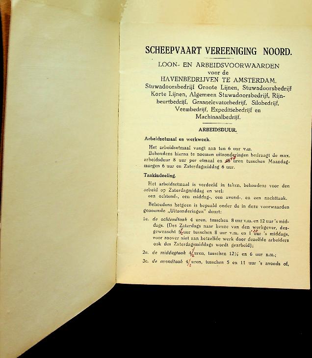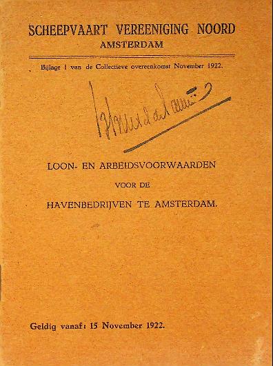 Scheepvaart Vereeniging Noord: 1922 Amsterdam, softcover, 17 blz., met loon en arbeidsvoorwaarden. In zeer goede staat