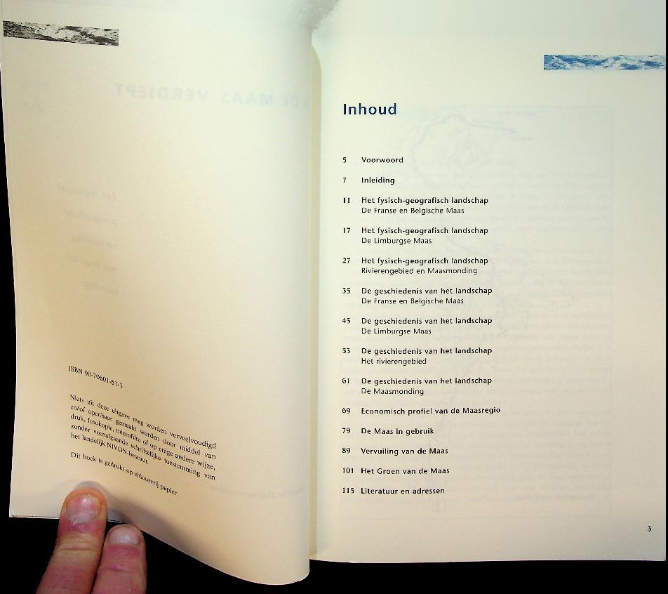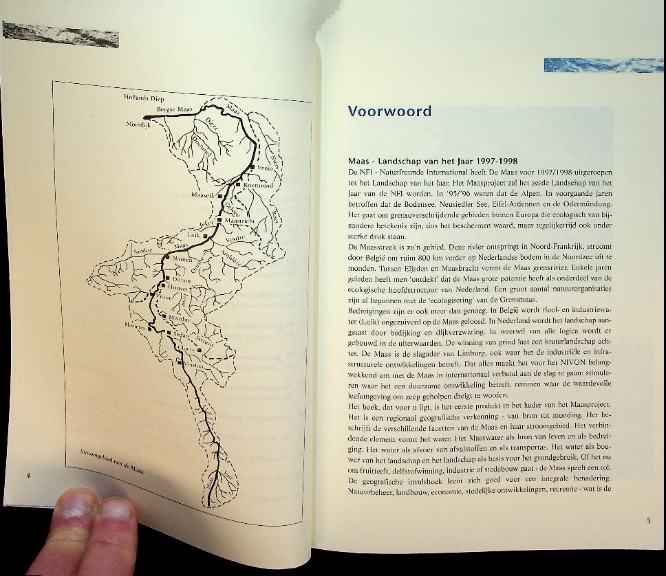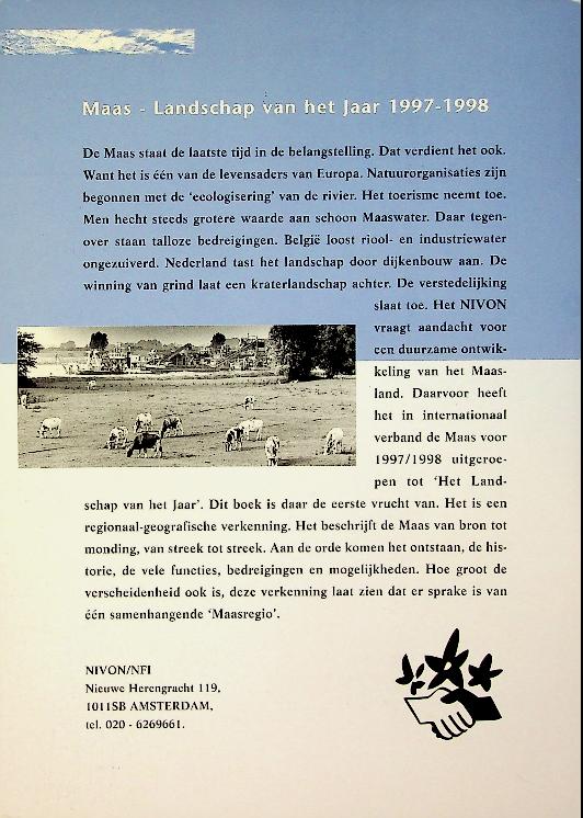 Duivenvoorden, Annette: NIVON 1997, softcover, 120 blz., geïllustreerd. Het boek In de Maas verdiept van Annette Duivenvoorden is een regionaal geografische verkenning van de Maas van bron tot monding. Het boek behandelt de geografische aspecten van deze rivier door het stroomgebied te beschrijven en te analyseren in verschillende regionale contexten. ISBN 9789070601614 / 9070601613 In zeer goede staat