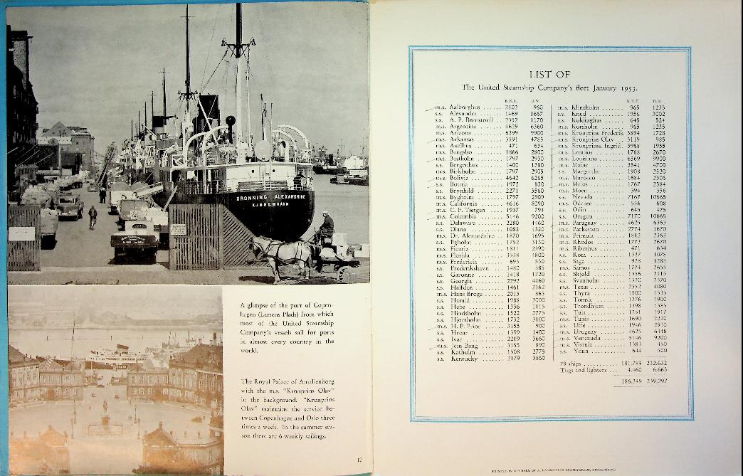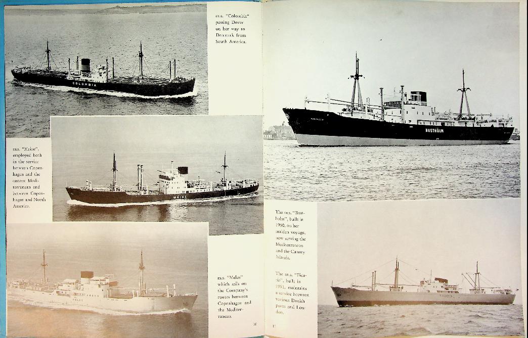 DFDS: 1953 Copenhagen, softcover, 14 pages, with many photos of ferry's and Merchant Ships, also fleet list of 1953. In very good condition