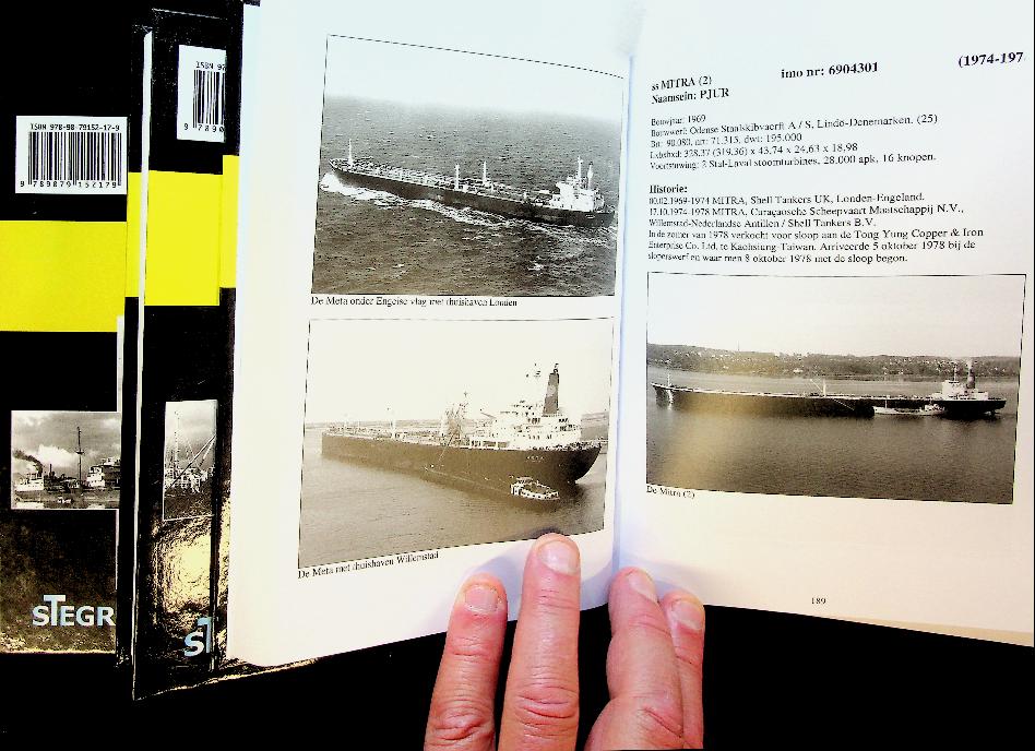 Stegro: ca. 2018, hardcover, met elkaar ongeveer 900 blz.. Alle schepen die ooit voor de Shell hebben gevaren of bij haar zustermaatschappijen. In eigen bezit of gecharterd. Elke tanker een foto of meerdere, specificaties en geschiedenis. In zeer goede staat. ISBN 9789079152179- 9789079152209- 9789079152216