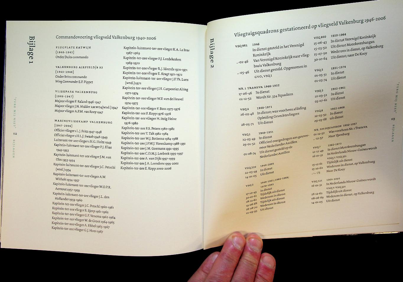 Alphen, Marc van. e.a.: 2007 NIMH, softcover, 122 blz., geïllustreerd. Marc van Alphen beschrijft de turbulente geschiedenis van Marinevliegkamp Valkenburg, een locatie die door de jaren heen door talloze hoogwaardigheidsbekleders werd gebruikt maar waarover relatief weinig was vastgelegd. Het boek schetst in hoofdlijnen de belangrijkste ontwikkelingen rond het gebruik en de betekenis van het vliegkamp door de tijd heen. ISBN 9789051942880 In zeer goede staat