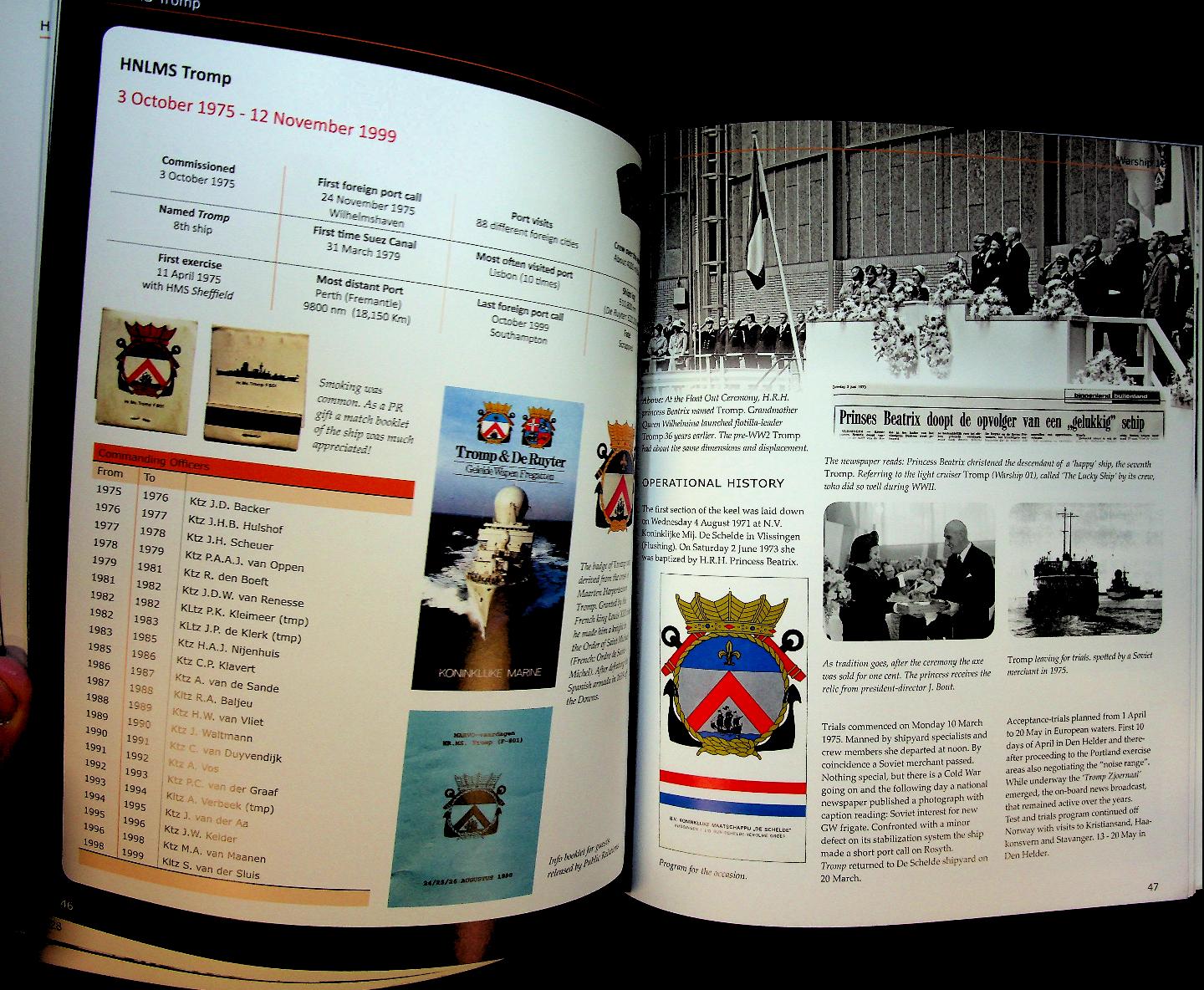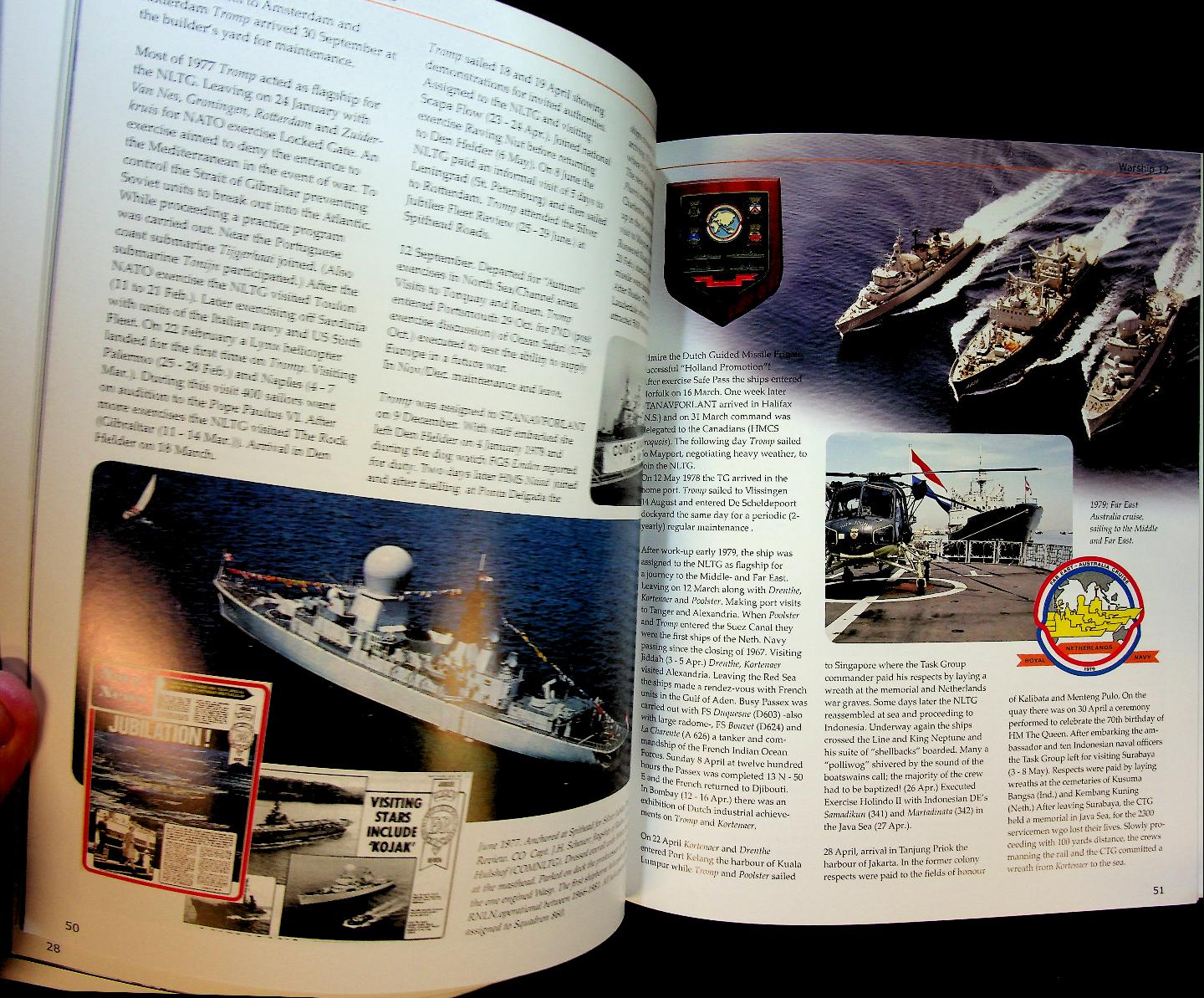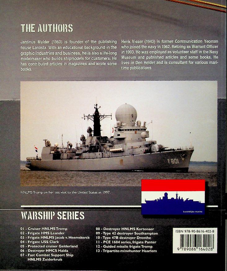 Mulder, J. and H. Visser: 2021 Lanasta, softcover 72 pages, illustrated. History, design, operational. Both Tromp-class frigates entered service in 1975/76. Their primary task was area air defence. They acted as flagships for the COMNLTG (Commander Netherlands Task Group). Because of their large radome (wich housed a 3D radar antenna) the ships had the nickname “Kojak” after the bolded actor in the famous tv-series. ISBN 9789086164028 New. English language
