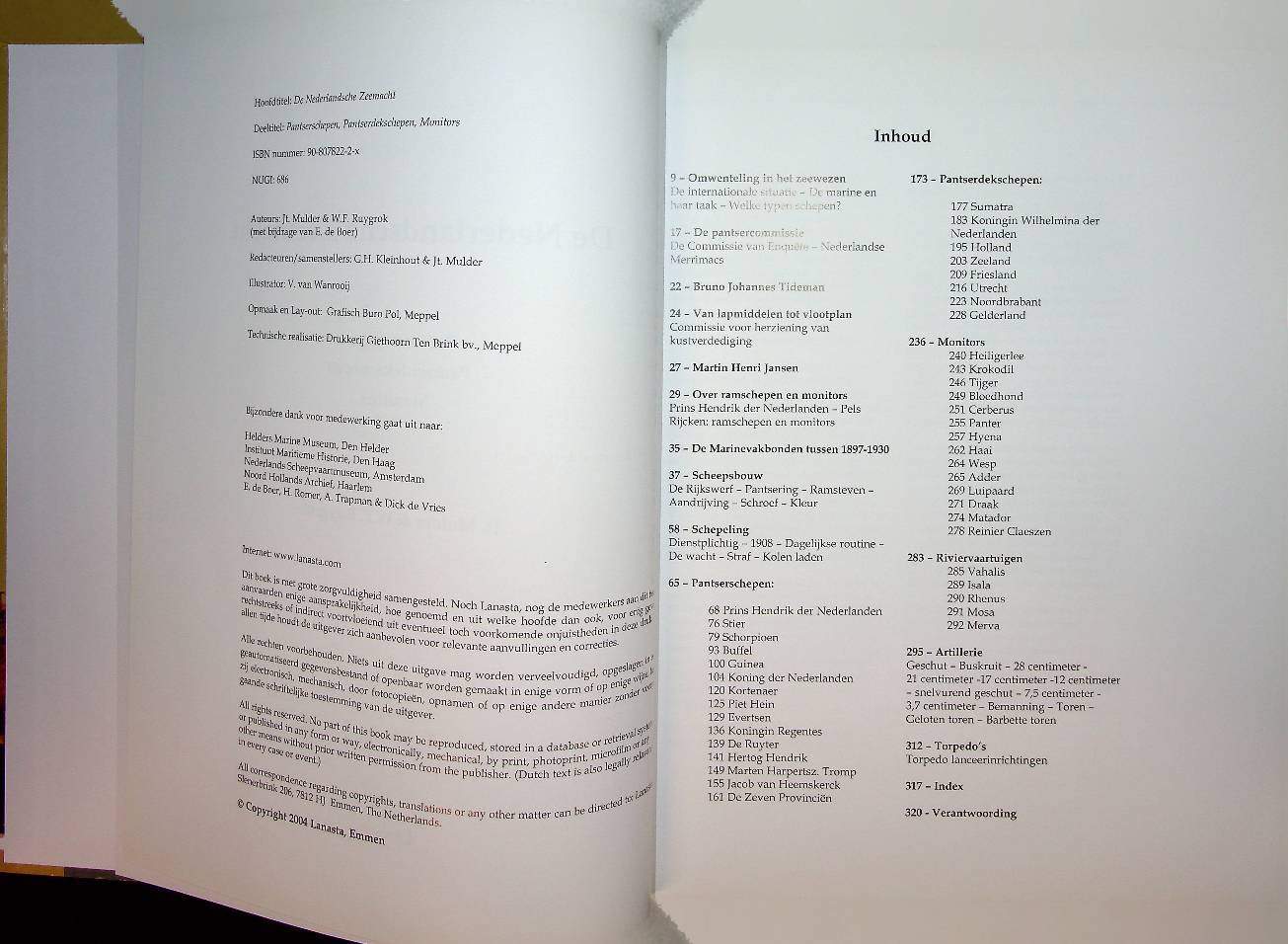 Mulder J.t. en W.F. Ruygrok: Lanasta Emmen 2004, hardcover 320 blz., geïllustreerd. Halverwege de 19e eeuw begon een nieuw tijdperk, dat werd ingeluid met een oorlog aan de andere zijde van Europa. Nieuwe materialen en technieken deden hun intrede. Het leidde onder andere tot een revolutie op het gebied van voorstuwing en bewapening. In enkele jaren tijd ontstonden overal ter wereld geheel nieuwe typen schepen. Nederland reageerde daarop met de bouw van schepen die aan de eigen defensietaken konden voldoen. Nooit eerder is in boekvorm aandacht besteed aan de schepen in deze boeiende periode, die grofweg liep tussen 1870 en 1920. Vele illustraties, met vaak unieke foto's, verlevendigen de teksten. Een stuk geschiedenis van de Nederlandsche Zeemacht en het begin van de hedendaagse Koninklijke Marine. ISBN 9789080782228 / 908078222x In zeer goede staat