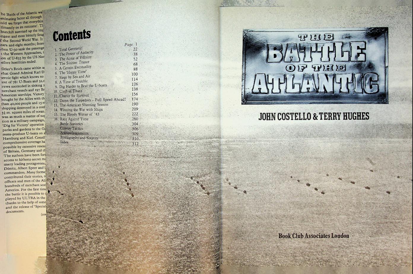 Costello, J and Hughes, T: 1977 UK, hardcover 314 pages. , with many photos and maps also index. A comprehensive narrative history of the struggle between German U-boats and Allied naval and air forces for control of the Atlantic lifeline between 1939 and 1945, emphasizing the strategic stakes and human cost on both sides. Drawing on a wide range of documentary sources, it traces how evolving technology, intelligence, and convoy tactics gradually turned the tide in favor of the Allies and secured Britain's survival. In good condition