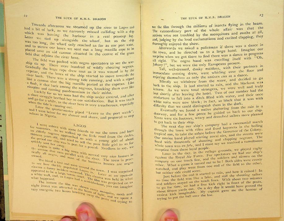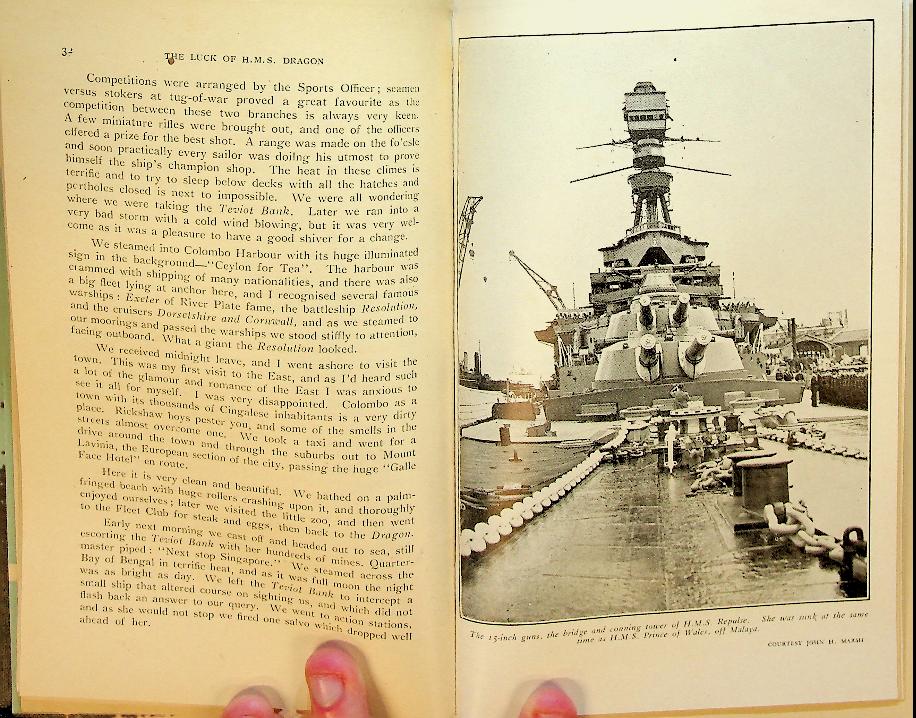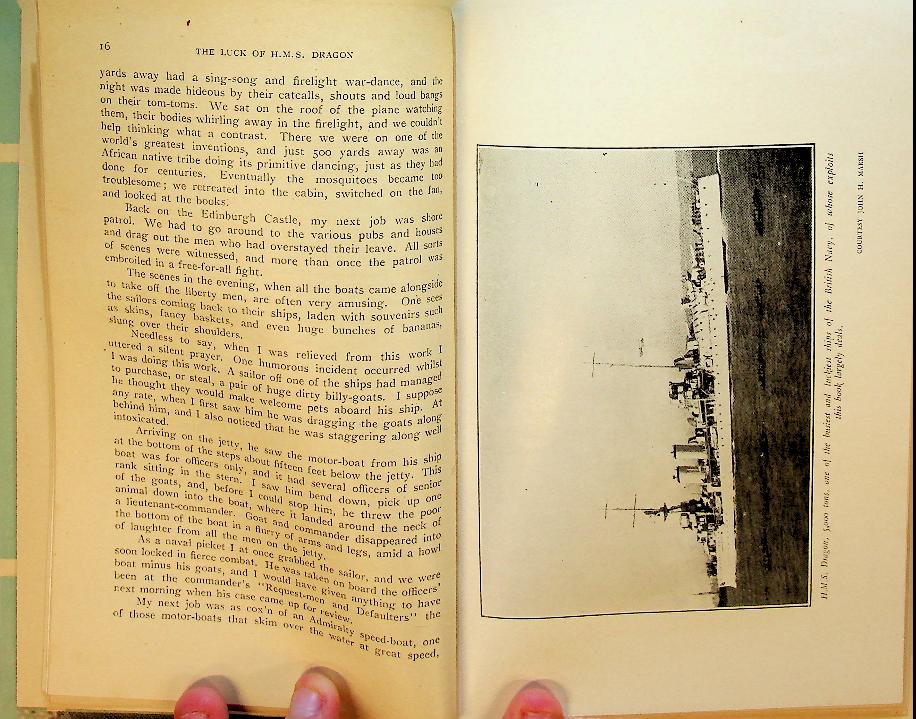 Seaman, A: 1944 Cape Town, hardcover 93 pages,.. The Luck of H.M.S. Dragon is a wartime memoir in which Able Seaman Eric H. Little, a South African sailor, recounts his experiences aboard the British destroyer HMS Dragon, describing a series of dramatic actions and narrow escapes in the Second World War, particularly in the Far East. (Java sea) The book offers a vivid first-hand account of life at sea under fire, highlighting the courage, endurance and occasional good fortune that kept ship and crew alive through multiple engagements. With marks of use