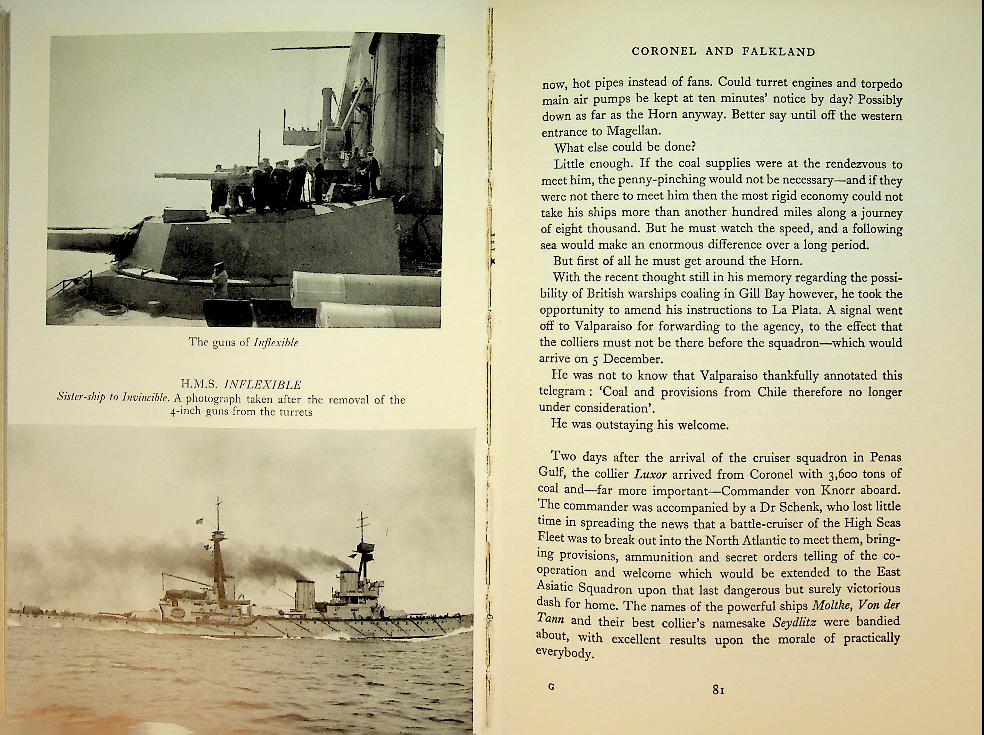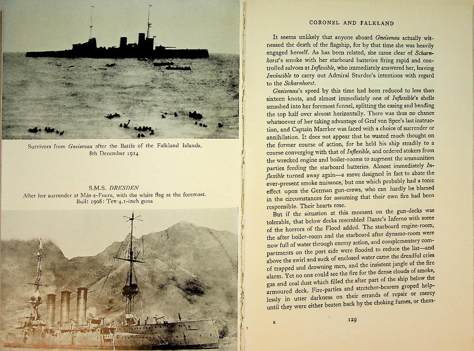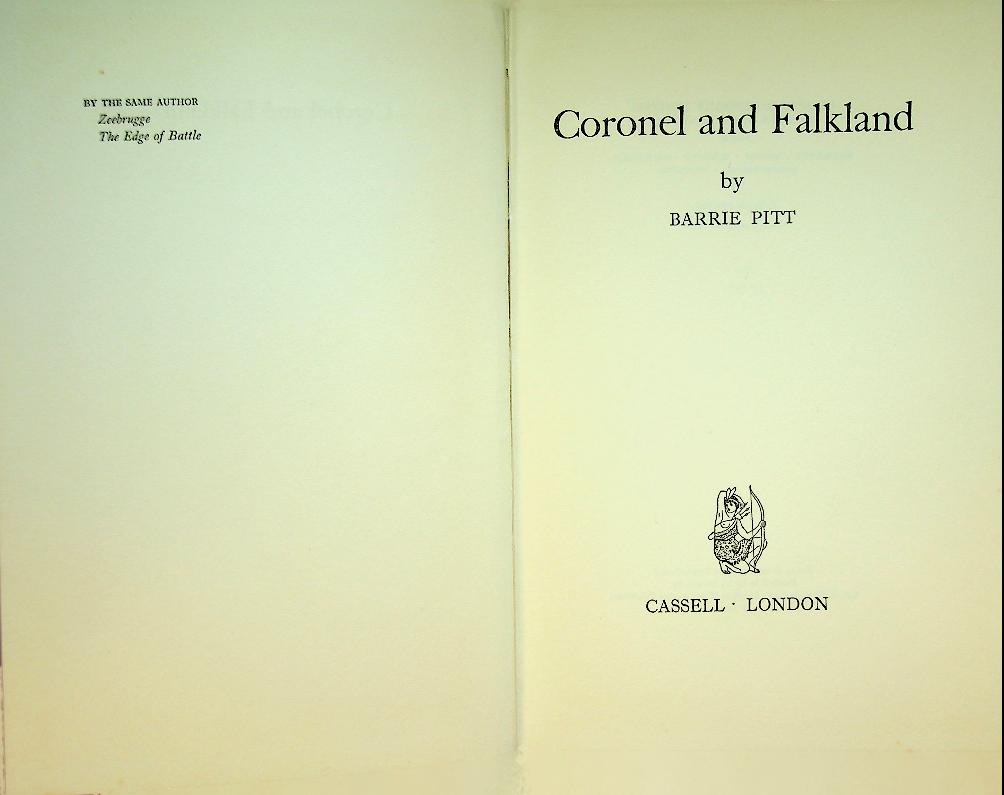 Pitt, Barrie: 1960 London, hardcover, no dustjacket 184 pages, with photo's. Battle Of the Falklands in 1914-1918. Barrie Pitt describes how Britain’s long-unquestioned naval supremacy was suddenly challenged in 1914 by Admiral von Spee’s German East Asia Squadron off the coast of South America, leading to the crushing British defeat at Coronel. The book then follows the Royal Navy’s rapid response and redeployment of battlecruisers that culminated in the decisive Battle of the Falkland Islands, where the German squadron was hunted down and destroyed, restoring British control of the sea lanes. In good condition