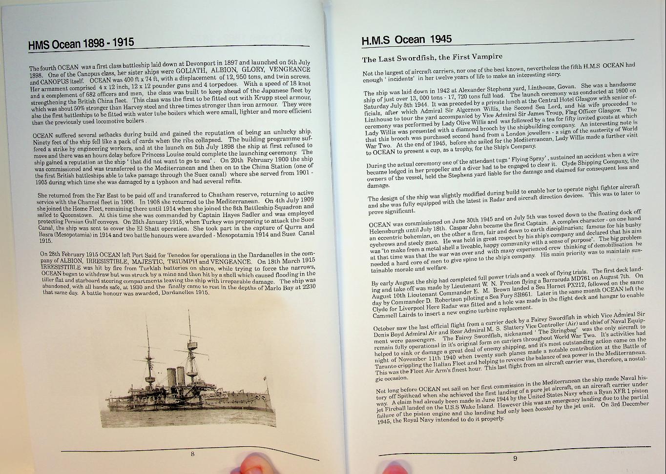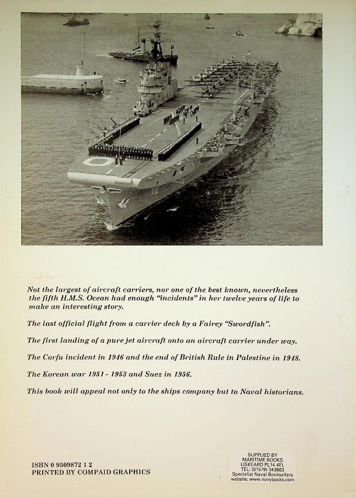 Knowlson, J: 1998 UK private publisher, softcover 138 pages, with photos. History of this Aircraft Carrier. illustrated history of the Royal Navy light fleet aircraft carrier HMS Ocean, focusing on her trials, peacetime deployments, and operational role from the end of the Second World War through the mid-1950s. The book covers her service as a test and front-line carrier, including postwar operations and Cold War-era duties ISBN 9780950987217 / 0950987212 In good condition