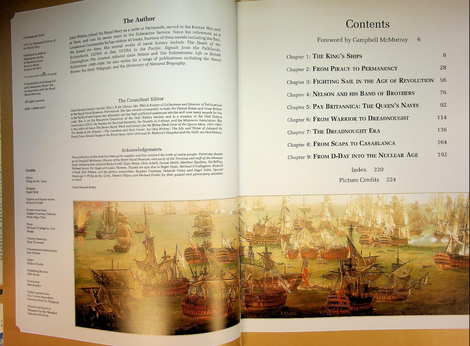 Winton, J: 2000 UK, hardcover with dustjacket 224 pages, illustrated 223 pages, with index. An Illustrated History of the Royal Navy surveys the development, campaigns, and global role of the British fleet from its early origins through the world wars and into the modern era, highlighting its strategic importance to Britain’s power and security. Richly illustrated with material largely drawn from the Royal Naval Museum collections, it combines narrative history with images of ships, battles, and sailors to vividly portray the evolution of the service. ISBN 9781840652185 with name in book, otherwise very good condition