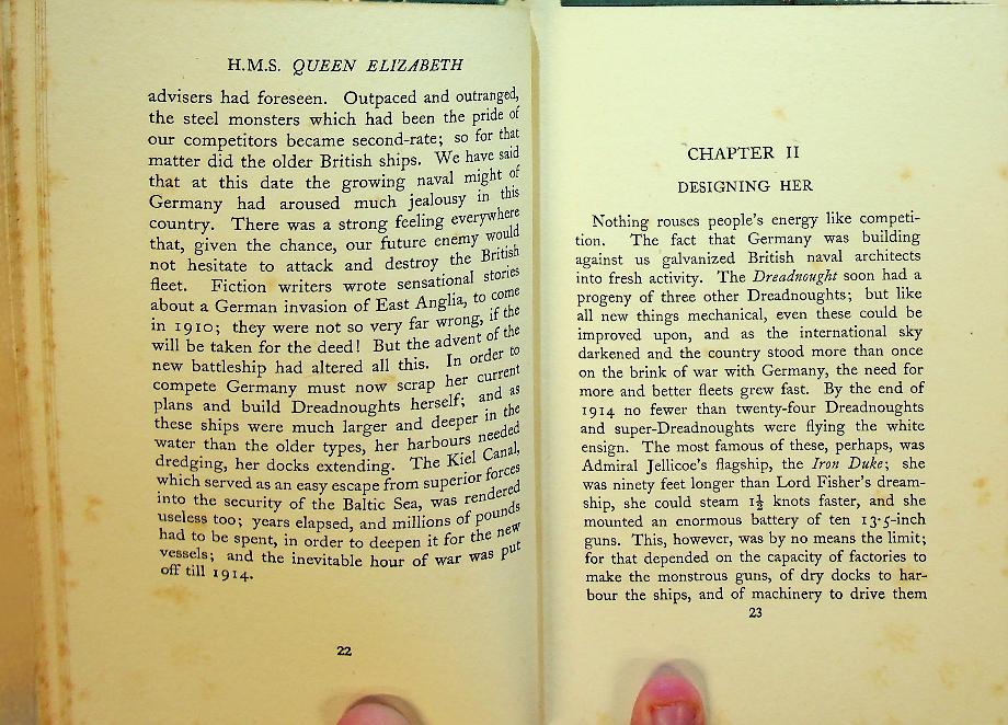 Webster Smith, B: 1940 Blackie and Son UK, hardcover 224 pages, photo. The Story of a Super-Dreadnought by B. Webster Smith is a narrative history of the Royal Navy battleship HMS Queen Elizabeth, focusing on her design, construction, and dramatic service as a flagship during the First World War and the interwar years. It combines technical description with eyewitness-style accounts to portray the ship’s role in major naval operations and her significance as a symbol of British sea power. In good condition