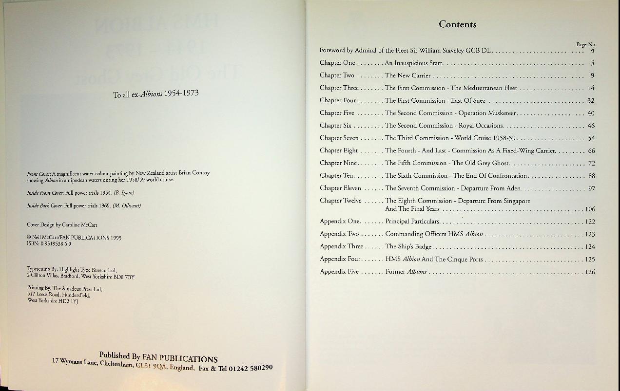 Mccart, N: 1995 UK, softcover 128 pages, with photos. History of this Aircraftcarrier. HMS Albion 1944-1973 by Neil McCart is a detailed history of the British aircraft carrier HMS Albion, covering her service in the Mediterranean, the Pacific, and other global duties during her operational years. The book includes illustrations and photographs, providing insight into the ship's role and legacy in the Royal Navy. ISBN 9780951953860 In very good condition
