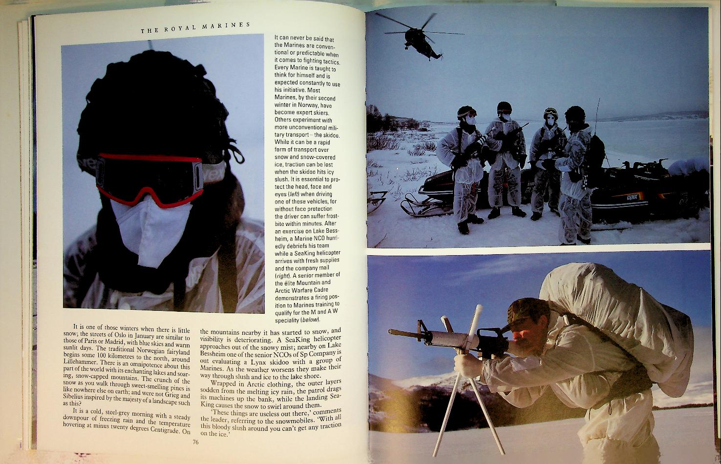 Young, J.R.: 1991 Guild UK, hardcover with dustjacket 191 pages, with photos. The Marines in perspective. Richly illustrated documentary history that traces the evolution, traditions, and operations of the Royal Marine Commandos, placing their role in modern warfare into clear historical perspective. It follows the Corps from its early sea-soldier origins to late‑20th‑century deployments, combining photographs and narrative to show training, combat, and daily life within this elite force. ISBN 9780385401876 In good condition