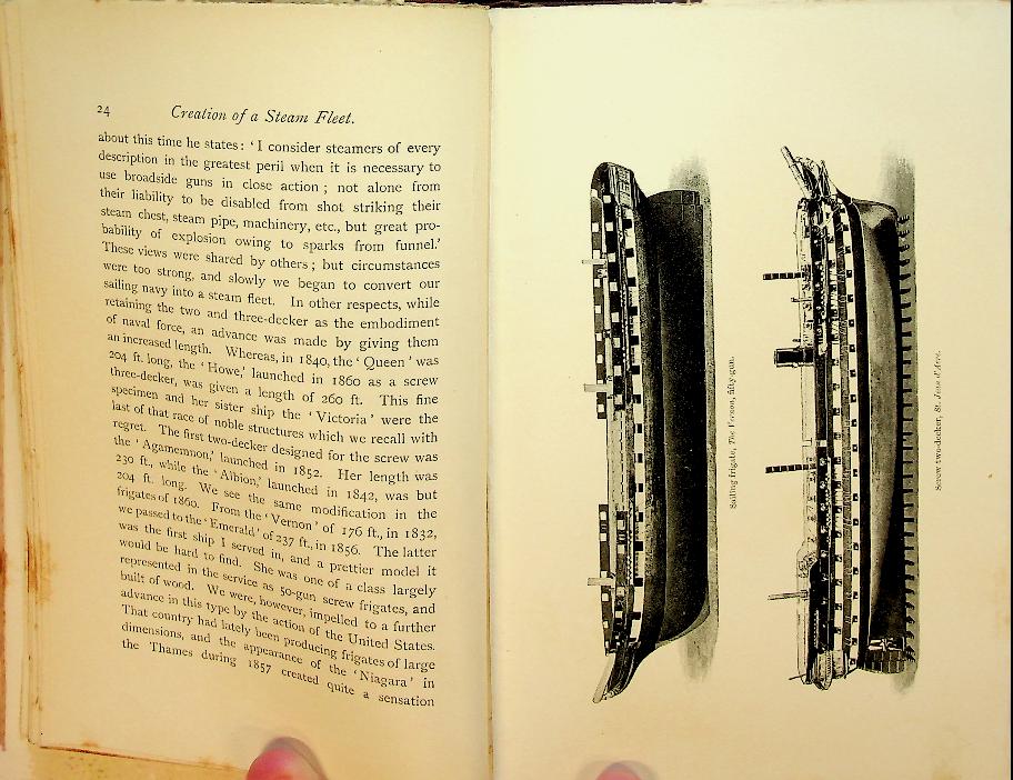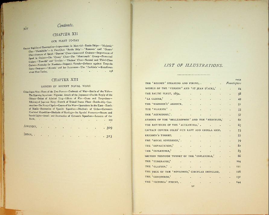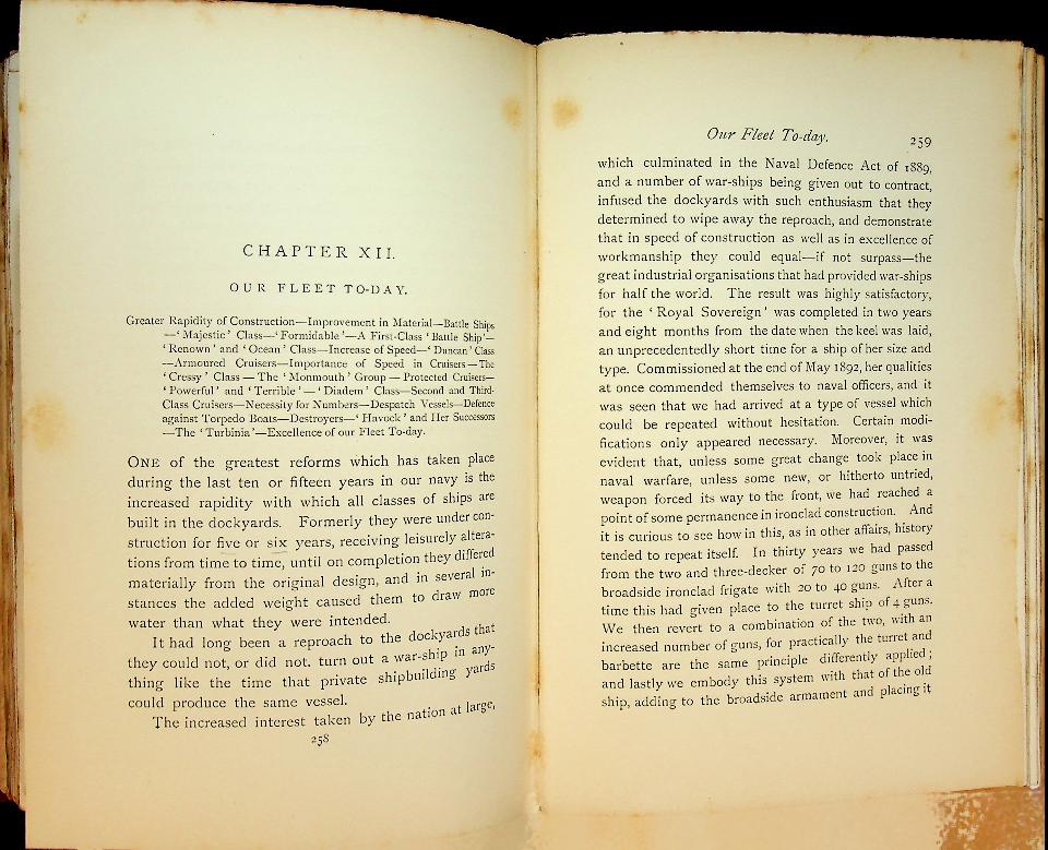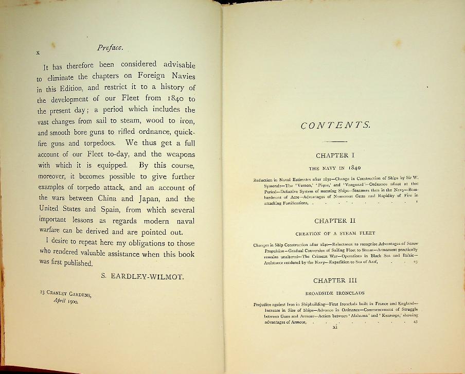 Eardley, Captain S. -Wilmot.R.N.: 1900 London, hardcover 329 pages. With a fleetlist and a index. Our Fleet To-day and Its Development During the Last Half-Century is a technical yet accessible survey of the evolution of the British Royal Navy from the mid-19th century to around 1900, written by Rear-Admiral Sydney Marow Eardley-Wilmot. The book traces changes in ship design, armament, armor, and tactics, with chapters on torpedo warfare and recent naval wars, to explain how Britain’s modern fleet emerged and why sea power remained vital to the empire. In very good condition