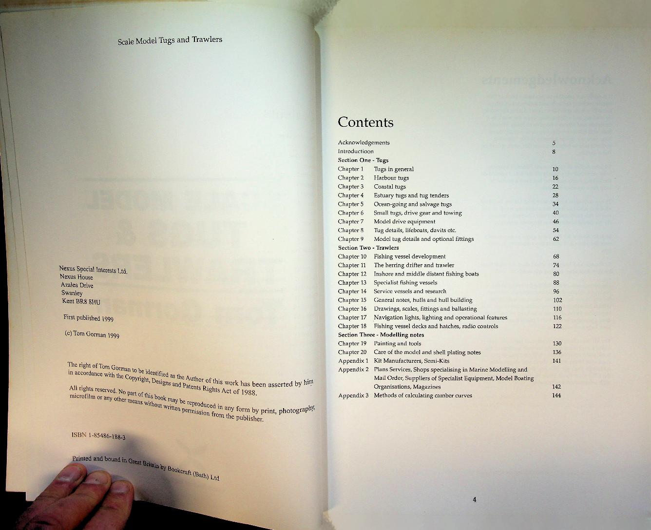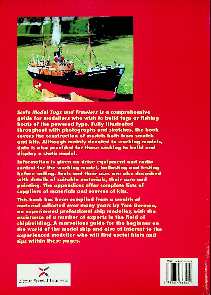 Gorman, T: 1999 Nexus UK, softcover 144 pages, with photo's and detailed drawings. Guide for modelling. "Scale Model Tugs and Trawlers" by Tom Gorman is a comprehensive guide for model builders interested in constructing powered tugs or fishing boats, featuring detailed illustrations and practical advice throughout. The book covers the latest techniques and developments in model tug and trawler building, making it a valuable resource for enthusiasts and hobbyists. ISBN 9781854861887 In very good condition