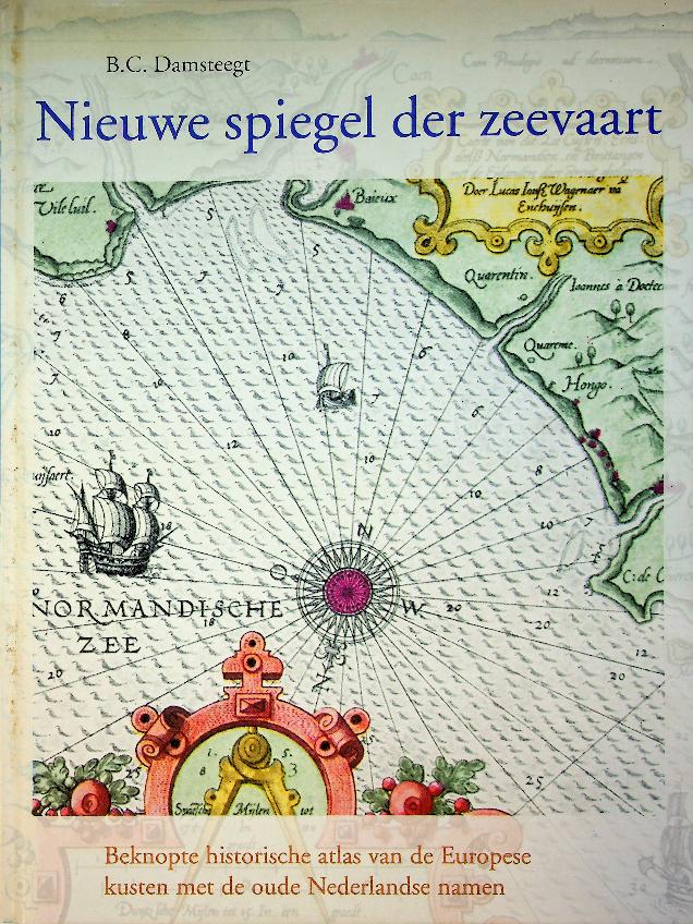 Damsteegt, B.C.: 2001 Amsterdam Koninklijke Akademie van Wetenschappen, hardcover 173 blz., met kaarten. Nieuwe spiegel der zeevaart van B.C. Damsteegt is een beknopte historische atlas die de Europese kusten in kaart brengt aan de hand van oude Nederlandse toponiemen zoals die op 16e- en 17e‑eeuwse zeekaarten voorkomen, met focus op naamkunde en kartografische bronnen uit de vroegmoderne zeevaarttraditie. Het werk wordt vaak beschreven als een repertorium/atlas van Nederlandse namen op historische zeekaarten en verscheen oorspronkelijk in 1942, met latere heruitgaven, waardoor het een standaardreferentie is voor maritieme historici en kartografen die oude plaats- en waternamen willen duiden. ISBN 9789069843025 In zeer goede staat