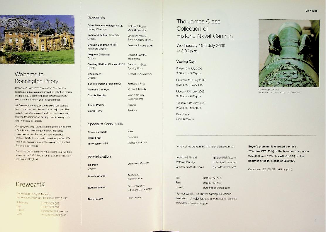Collective: 2009 Dreweatts Auction House UK, softcover, 16 pages, with photos and all the information of the Cannons for the auction Sale. In very good condition