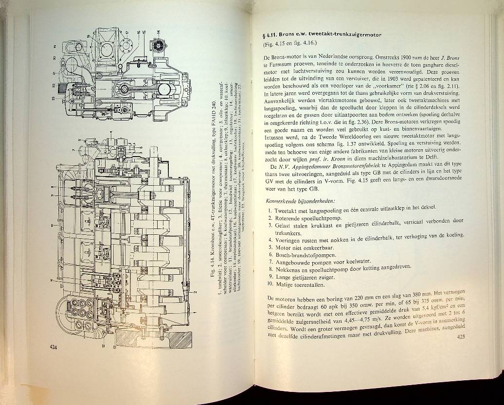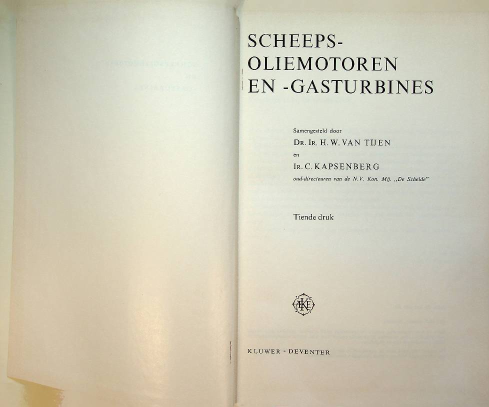Tijen, H.W. van: 1967 Kluwer, hardcover 610 blz., met de werking van motoren uit die periode zoals de scheepsmotoren van Werkspoor, Stork, Sulzer, B&W, MAN, Fiat, Gotaverken, Doxford, Kromhout, Brons, Industrie, Bolnes. In zeer goede staat