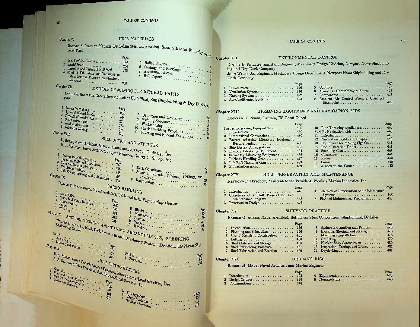 D'Arcangelo, A.M.: 1977 University of Michigan, hardcover, 618 pages, illustrated. A comprehensive professional reference on the principles and practice of naval architecture, covering the full process from preliminary design to detailed construction of steel merchant ships and other vessel types. It combines contributions from multiple experts of the Society of Naval Architects and Marine Engineers, addressing technical design theory, structural analysis, production methods, and operational considerations for shipbuilders and maritime engineers. In good condition