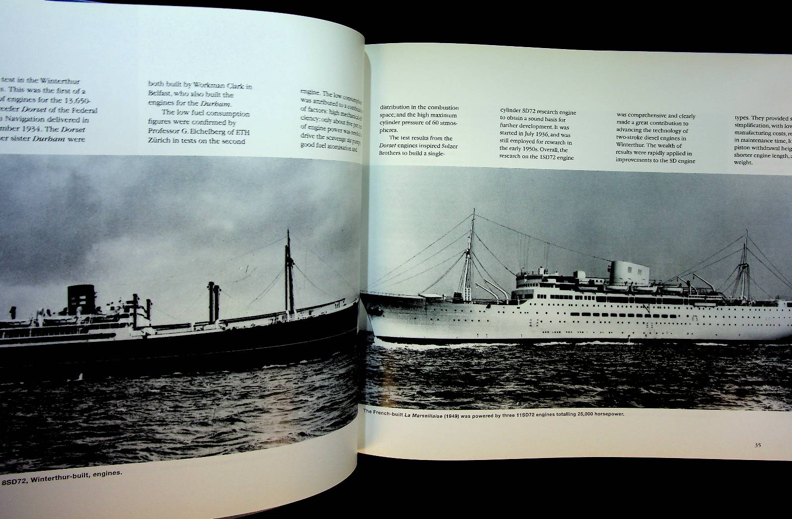 Somer, Jack A. and Helmut Behling: 1997 Wartsila Switzerland, hardcover 187 pages, with many photos. "From The Mountains To The Seas" by Jack A. Somer is a comprehensive historical account of the Sulzer diesel engine, documenting its development and evolution from the company's origins in the Swiss mountains to its widespread marine applications across the world's seas. The book, published in 1997 by Wärtsilä NSD Switzerland, chronicles the technical innovations and industrial significance of this influential engine design that became crucial for maritime propulsion ISBN 9783952156100 / 3952156108 In very good condition