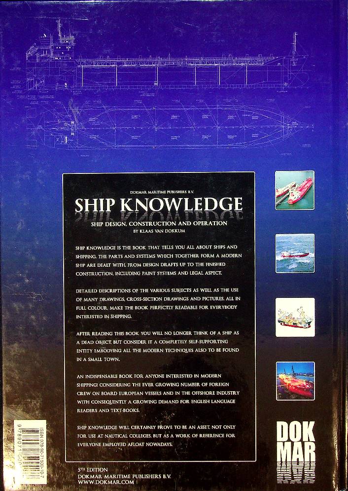 Dokkum, K. van: 2011 Dokmar Enkhuizen. illustrated reference work that explains all major components, systems and technologies of modern seagoing vessels, from initial design drawings to the fully operational ship. It is written in accessible English for maritime students and professionals, presenting ships as self-supporting operating units comparable to small cities in terms of integrated technical systems. ISBN 9789071500183 In very good condition