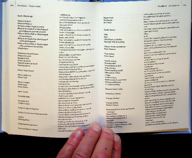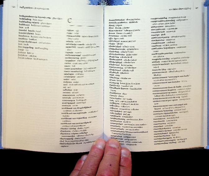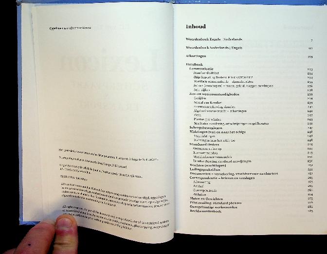 Kluijven, P.C. van: 2001 Kluwer, hardcover 287 blz. Het is een tweetalig naslagwerk voor de scheepvaart- en transportsector met een uitgebreid Nederlands-Engels en Engels-Nederlands lexicon, aangevuld met communicatieve standaarden en een beeldwoordenboek voor vaktermen aan brug, machinekamer en marifonie. Het boek combineert een woordenboekdeel met een praktisch handboek dat ook veelgebruikte begrippen uit verzekering, vrachtvervoer en charterdocumenten uitlegt, en is geschreven door P.C. van Kluijven van het Scheepvaart- en Transportcollege. ISBN 9789055770540 / 905577054x In goede staat