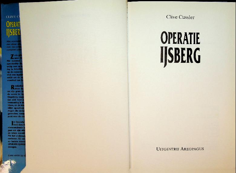 Cussler, C: 1995, hardcover met papieromslag, 271 blz. Dirk Pitt ontdekt een uitgebrand spookschip dat vastzit in een ijsberg en moet achterhalen of de uiterst geheime lading nog aan boord is gebleven. Zijn onderzoek ontketent een meedogenloze jacht op een criminele organisatie, vol intriges, sabotage en dodelijke confrontaties. In goede staat
