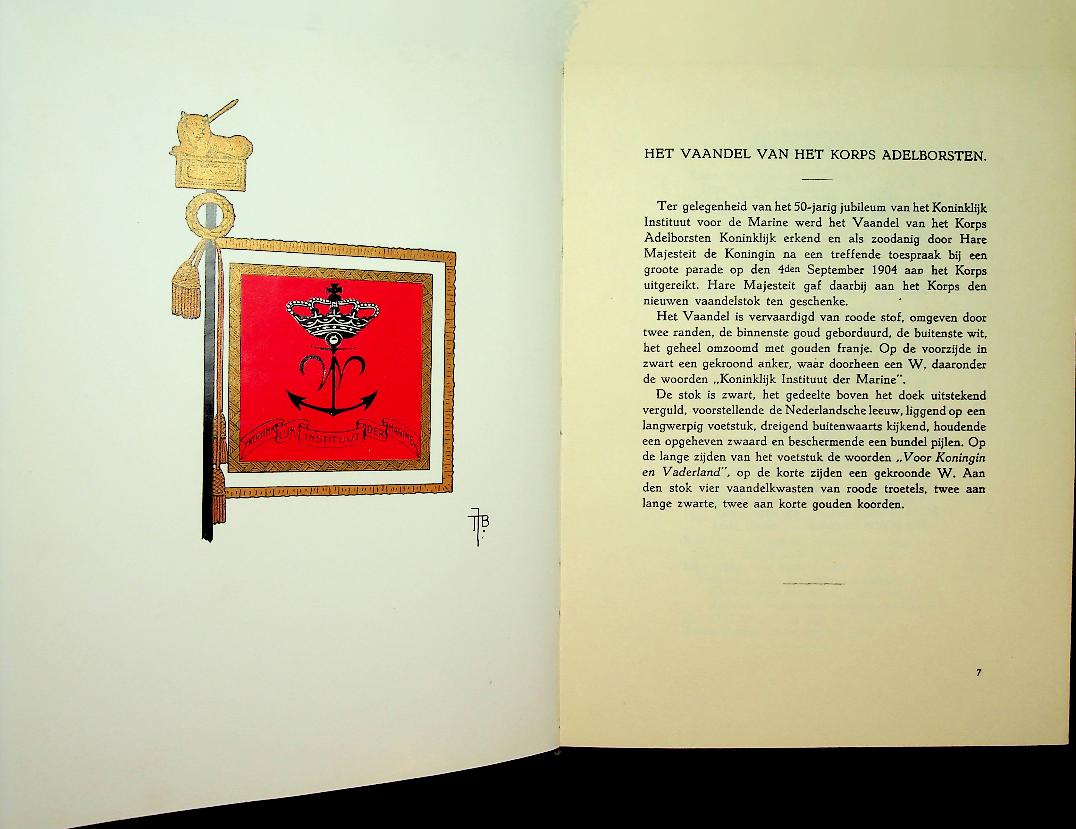 Collectief: 1933 Den helder, hardcover, 127 blz. geïllustreerd. Het Jaarboekje van het Korps Adelborsten 1933 is een interne almanak/ herinneringsuitgave van het Koninklijk Instituut voor de Marine (KIM) die je meeneemt in de leef- en opleidingswereld van de adelborsten in dat jaar. Het bevat doorgaans vaste onderdelen zoals een voorwoord (door de commandant), liederen/ceremoniële teksten, een activiteitenoverzicht en een namenoverzicht van de adelborsten, vaak aangevuld met een terugblik op het Assaut (het galafeest) en foto’s/relazen. Restanten van de oude papieromslag op cover. In zeer goede staat