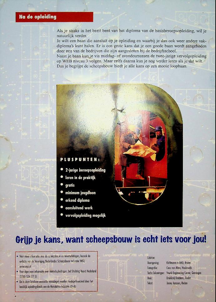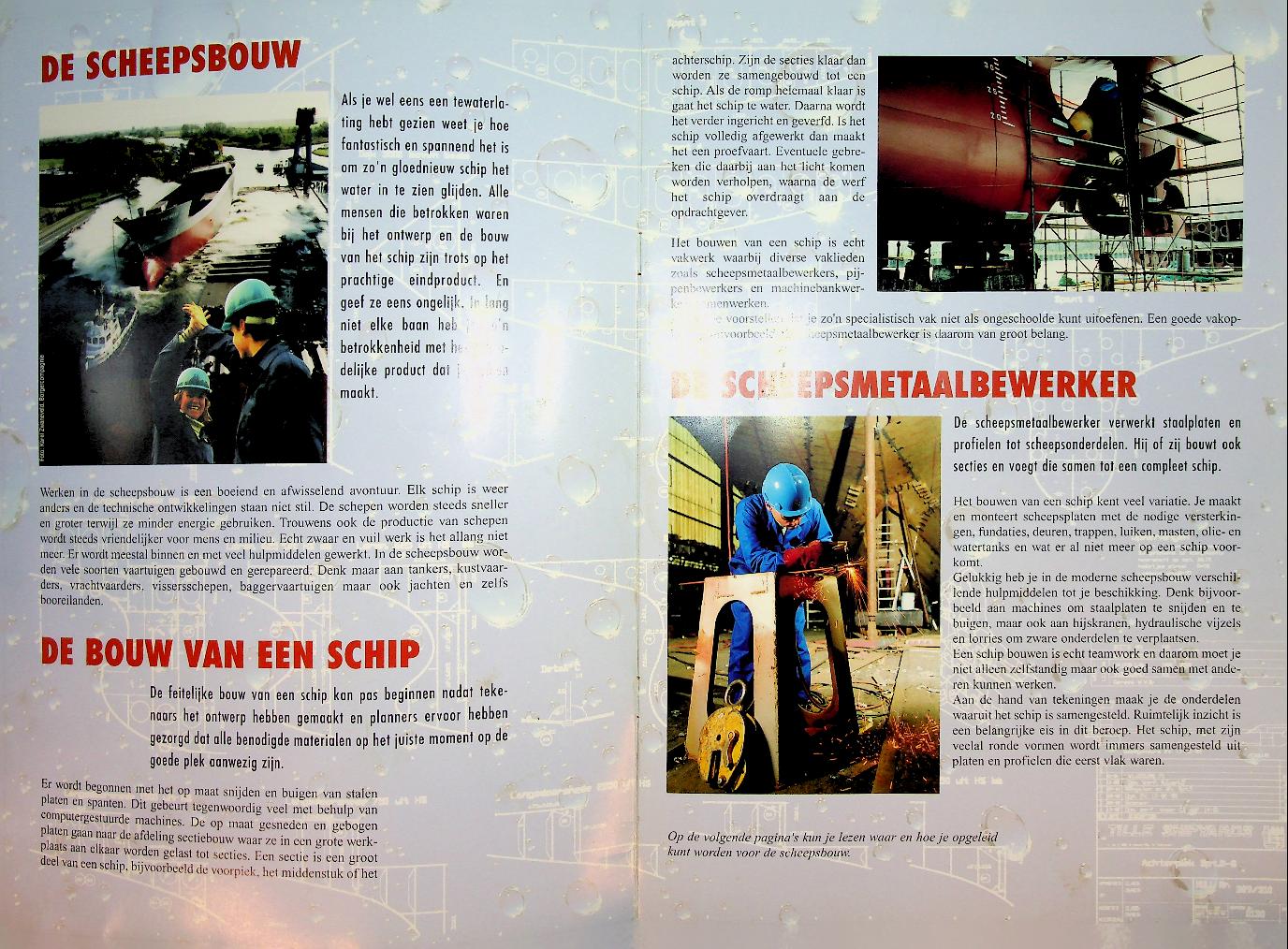 VSK: ca. 2000, softcover, 8 blz., stevig papier, geïllustreerd. Met informatie over het werken in de scheepsbouw. In goede staat.