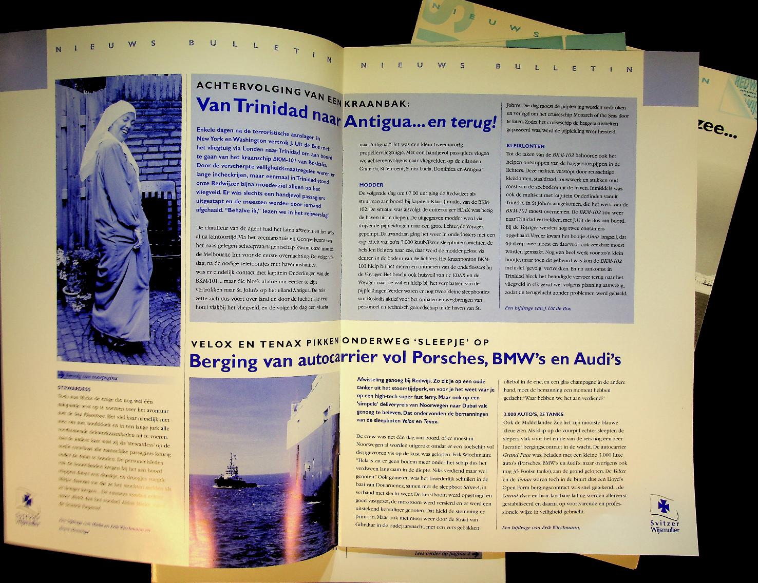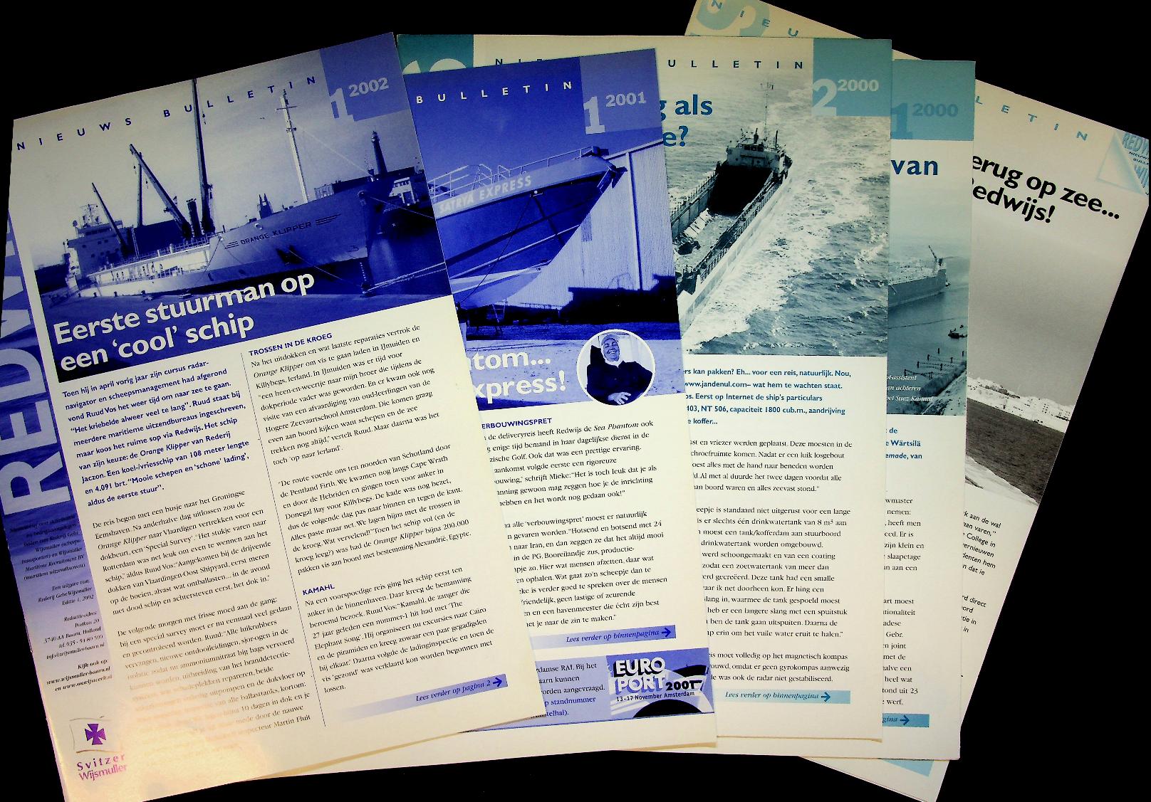 Wijsmuller: Stapeltje van 5 verschillende nieuwsbulletins tussen 1999 en 2002. Met informatie en foto's van uitleveringen. In zeer goede staat