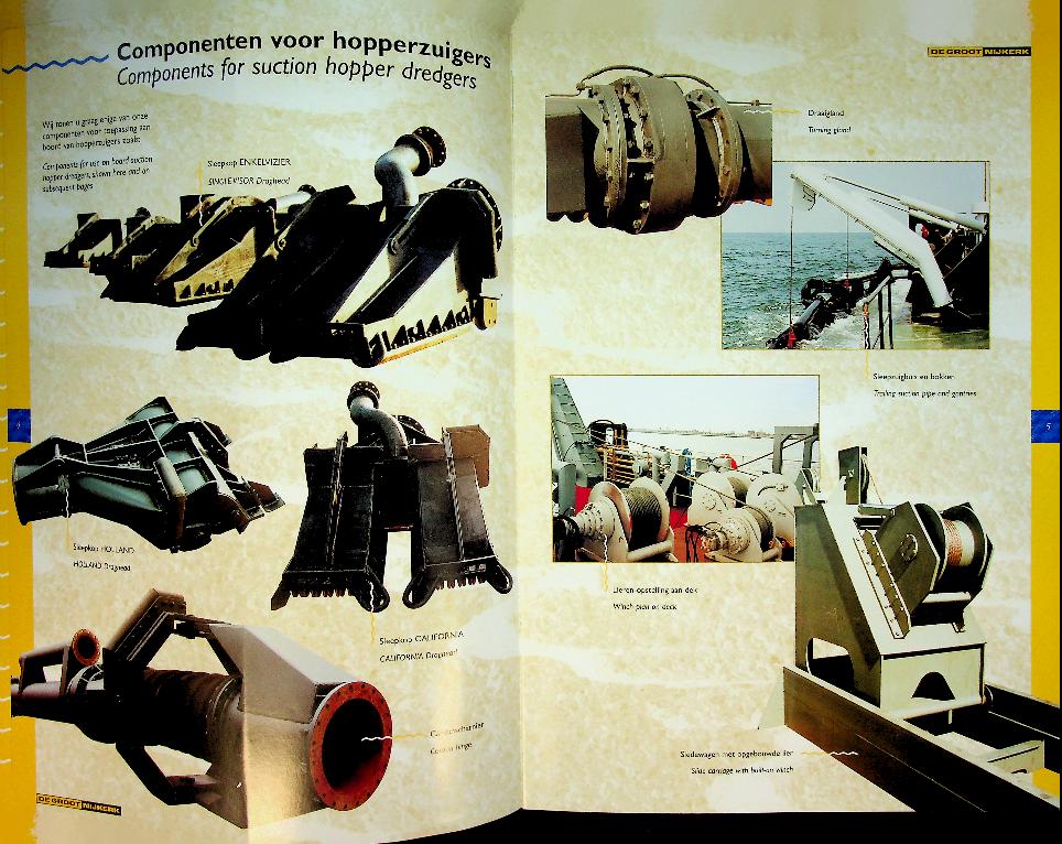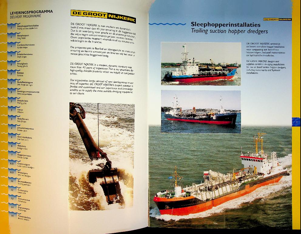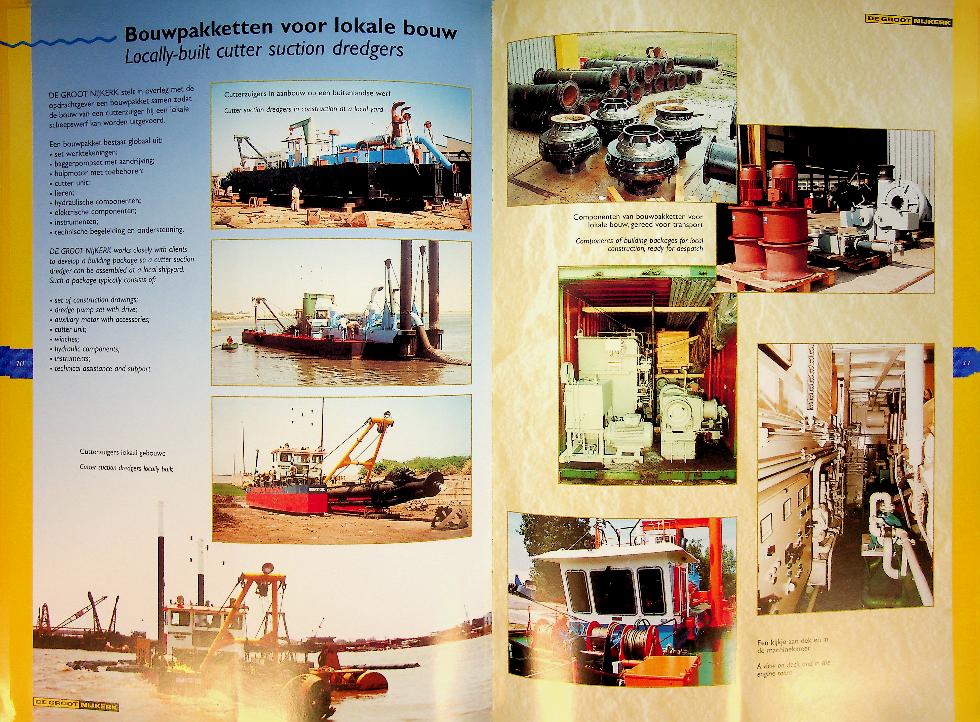 De Groot Nijkerk: ca. 1995, softcover, 12 pages, Catalogue with many photos of small dredgers and equipment. In good condition