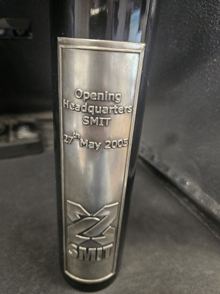 Smit International: 2005 Rotterdam. Un-opend wine bottle with metal label, with the text. Opening Headquarters Smit 27th May 2005, with the logo of Smit. In very good condition (Because of fluid reason, no sending outside Europe)