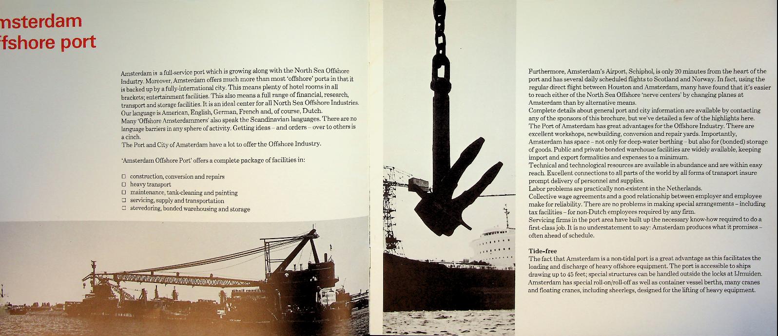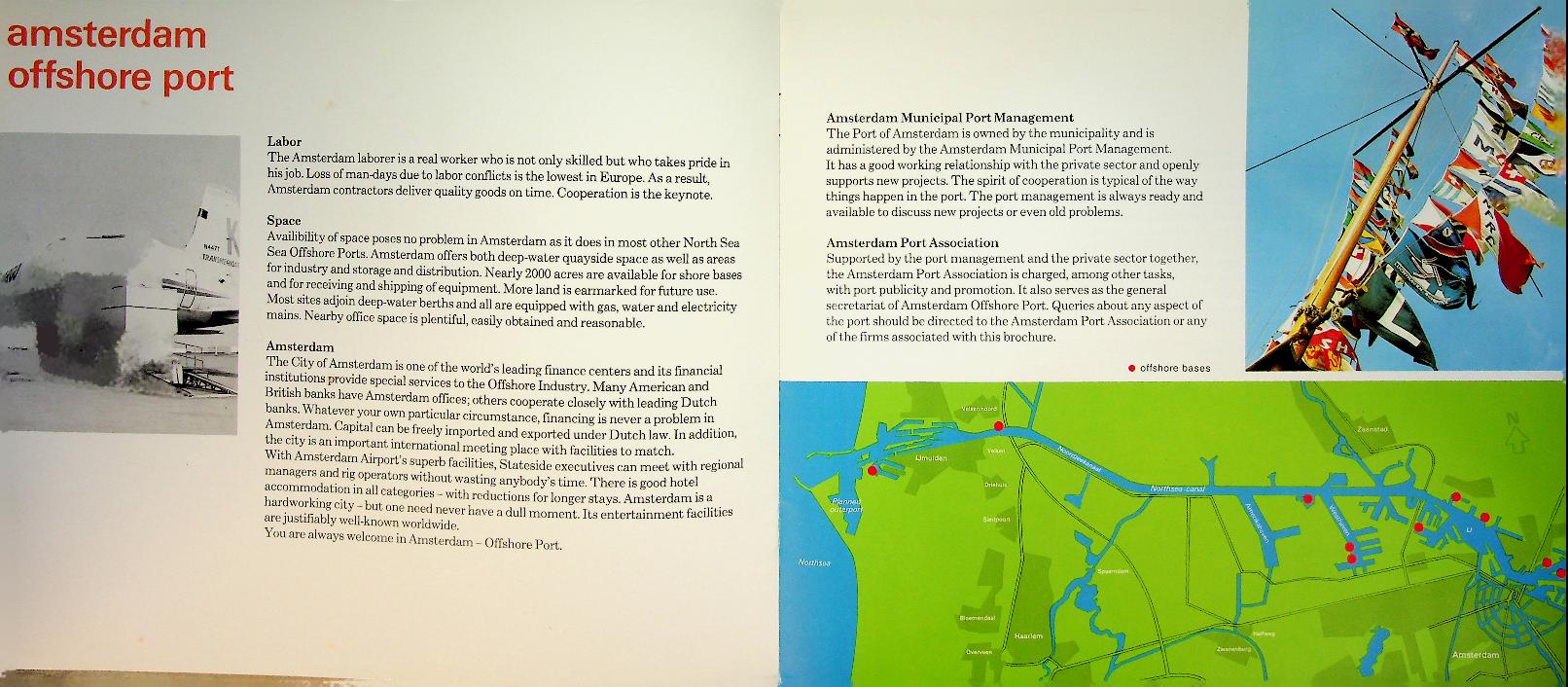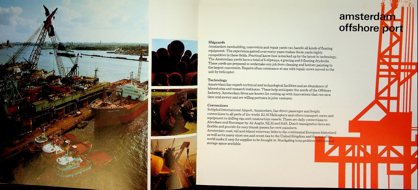 Amsterdam Port Association: ca. 1980 Amsterdam, softcover, 8 pages, with photos of offshore activities in the harbor. In very good condition