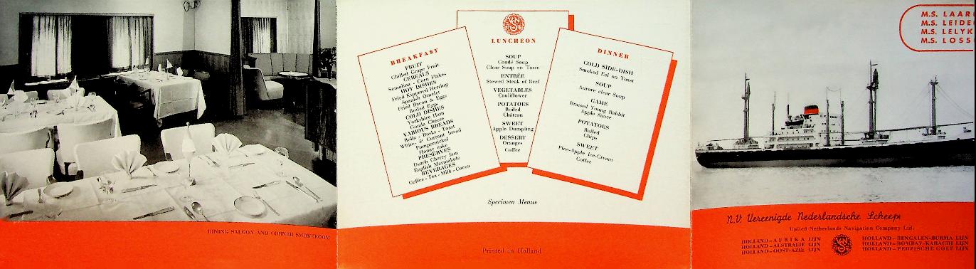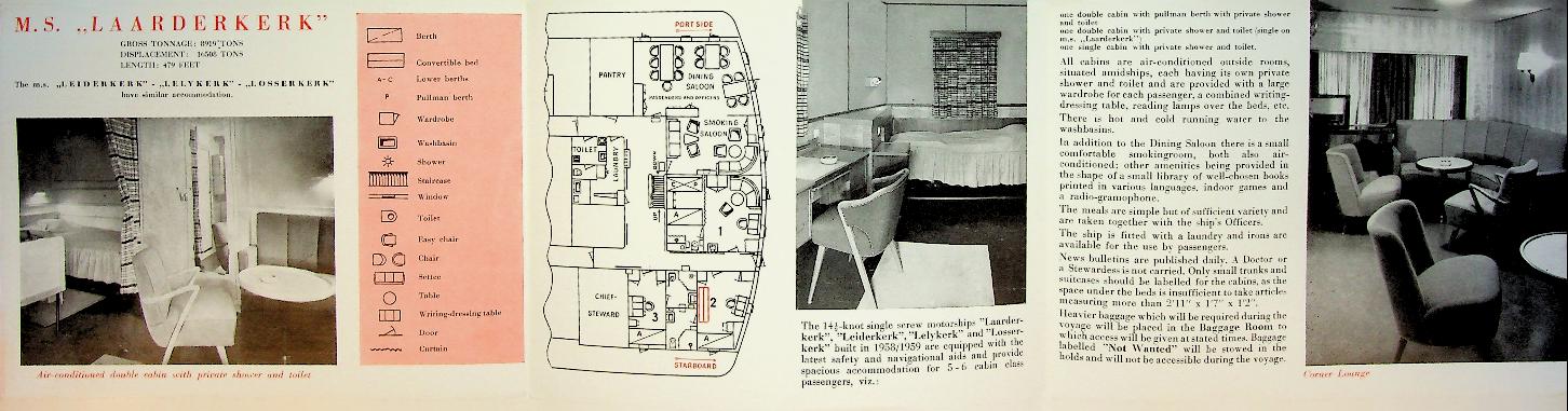 VNS: 50er jaren. In zessen uitklapbaar, met foto's van schip en interieur van deze vier schepen, dekplannen en informatie over schip en route. Deze vier schepen waren een gecombineerde passagier/vrachtschip. In zeer goede staat