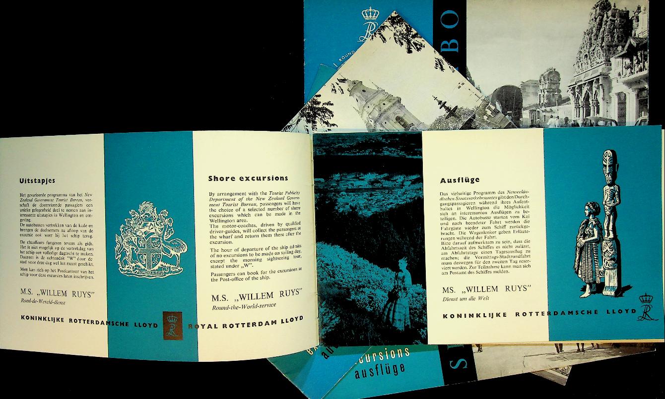 Brochures Royal Rotterdam lloyd MS Willem Ruys, Excursions different Places