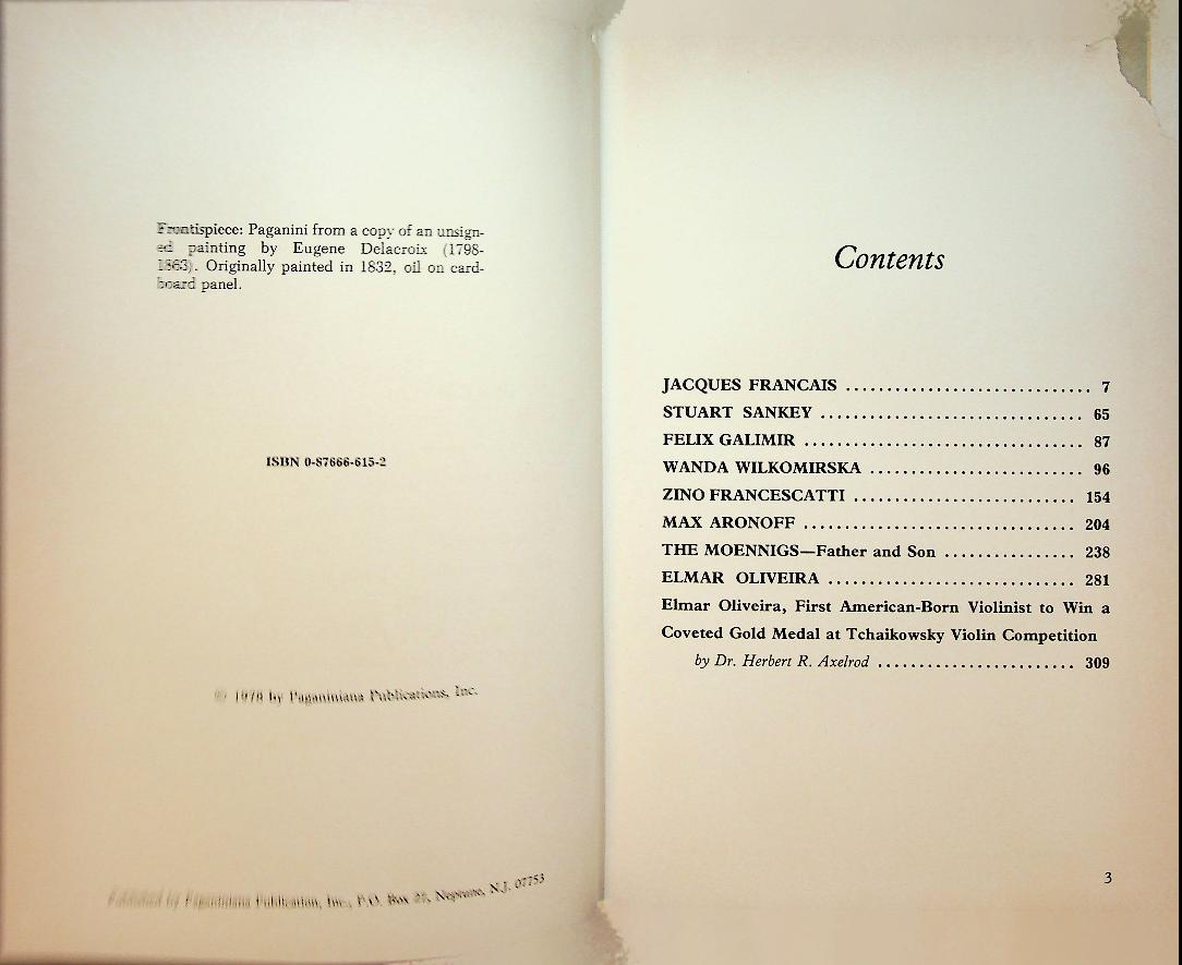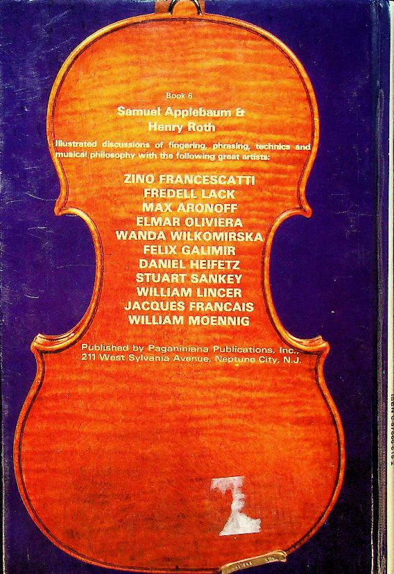 Applebaum, s. and H. Roth: 1978 USA, hardcover, 352 pages, illustrated. Book 6 presents in‑depth interviews and technical discussions with leading string players, focusing on their approaches to tone, interpretation and practice. It offers detailed insights into the artistry of Zino Francescatti, Max Aronoff, Elmar Oliveira, Wanda Wilkomirska, Felix Galimir, Stuart Sankey, Jacques Francais and William Moennig. ISBN 9780876666159 / 0876666152 In very good condition