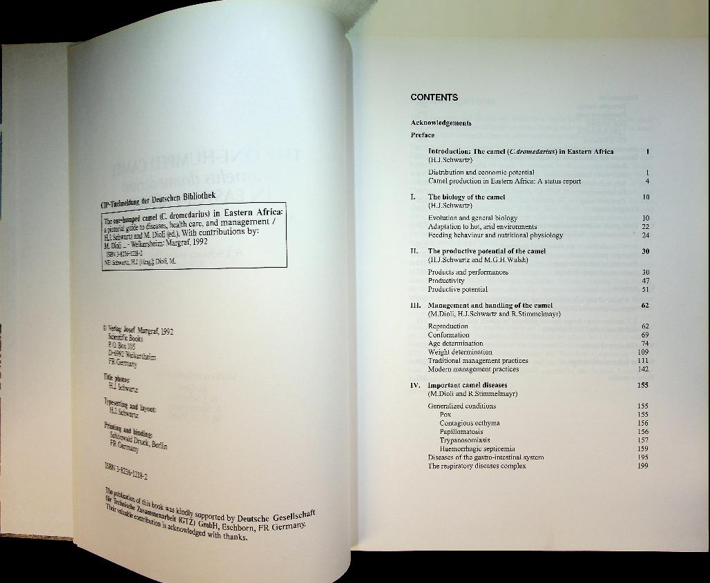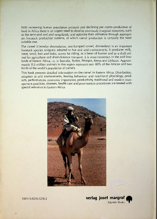 Schwartz, H.J. and M. Dioli: 1992 Germany, hardcover, 282 pages, illustrated. The book “The One-Humped Camel in Eastern Africa: A Pictorial Guide to Diseases, Health Care and Management” by H. J. Schwartz and M. Dioli is a practical, image-rich handbook covering camel distribution, adaptations to arid environments, husbandry, productivity, and a comprehensive overview of diseases and veterinary care tailored to Eastern Africa’s pastoral systems. It synthesizes field-based knowledge and veterinary science to guide management, health interventions, and post-mortem procedures for dromedaries central to livelihoods in countries such as Somalia, Sudan, Ethiopia, Kenya, and Djibouti, where most of Africa’s camels live. ISBN 9783823612186 In very good condition