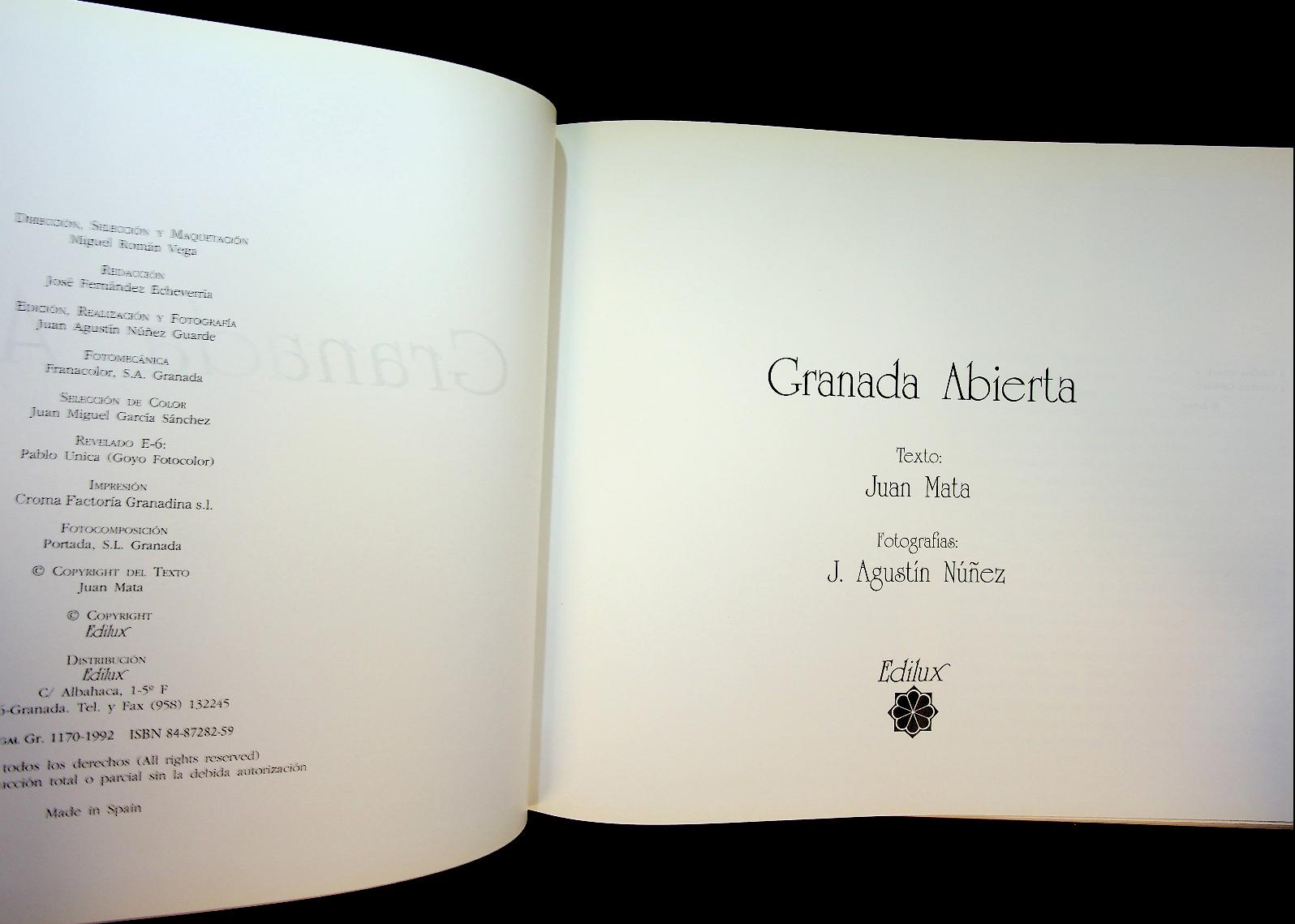 Mata, G: 1992 Edilux Spain, hardcover met papieromslag. Fotoboek van Granada. De gebouwen, interieurs, sfeer, cultureel leven, landschap etc ISBN 848728259 In goede staat