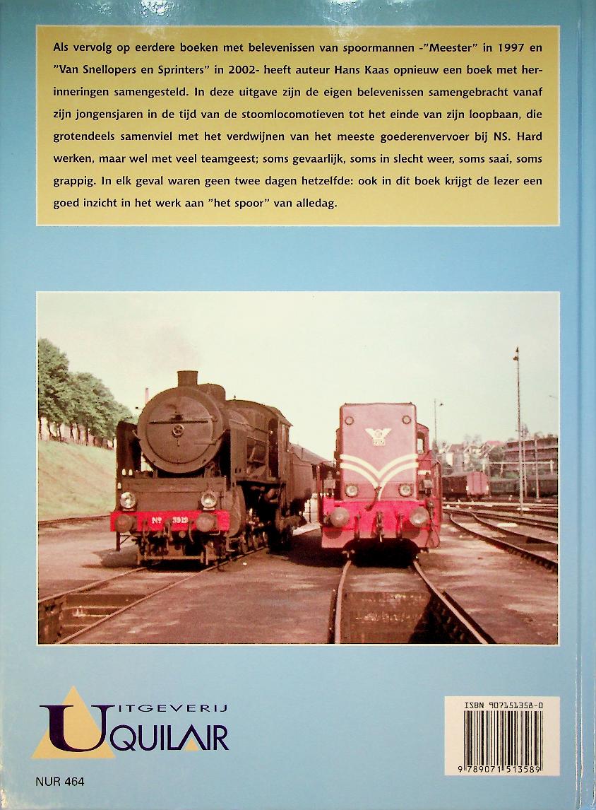 Kaas, Hans: 2007 Uquilair, hardcover, 208 blz., geïllustreerd. In Houten wagens IJzeren mannen deelt Hans Kaas zijn persoonlijke memoires over het spoorwegleven, variërend van de nostalgische stoomtijd in zijn jongensjaren tot de latere afbouw van het goederenvervoer. Het boek biedt een authentieke en levendige inkijk in de verdwenen werkcultuur op het spoor, gekenmerkt door hard werken, kameraadschap en de dagelijkse realiteit van 'de man op de bok'. ISBN 9789071513589 In zeer goede staat