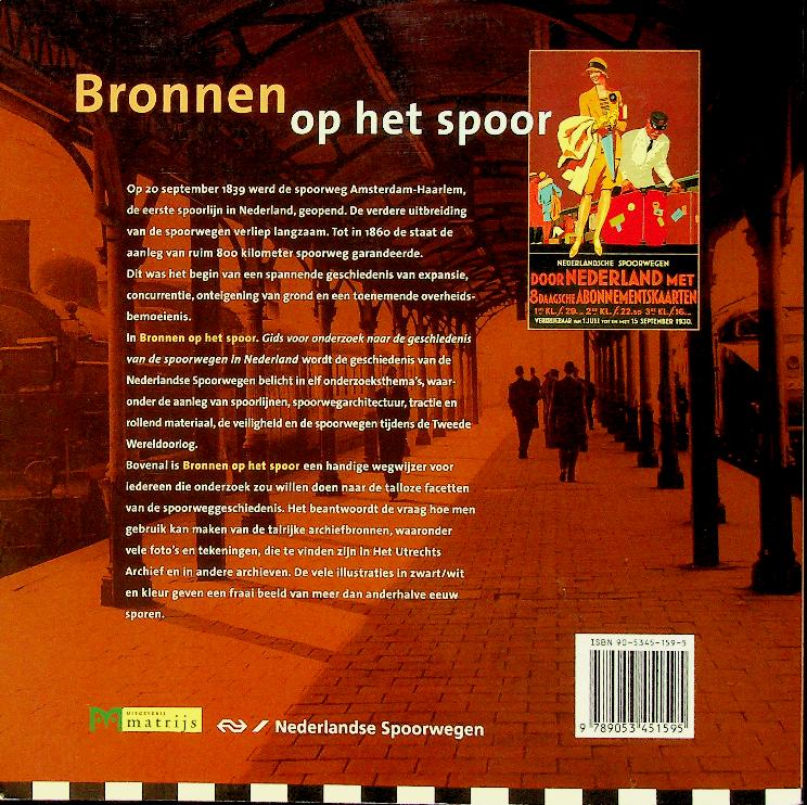 Collectief: 2000 Matrijs Utrecht, softcover, 107 blz., geïllustreerd. Bronnen op het spoor. Gids voor onderzoek naar de geschiedenis van de spoorwegen in Nederland is een praktische handleiding voor iedereen die onderzoek wil doen naar de Nederlandse spoorweggeschiedenis, met uitleg over welke archieven, collecties en documentsoorten beschikbaar zijn en hoe deze te gebruiken. Het boek bespreekt systematisch de belangrijkste instellingen, bronnen en onderzoeksmethoden voor spoorwegstudies, zodat zowel historici als liefhebbers gericht hun weg in het bronnenmateriaal kunnen vinden. ISBN 9789053451595 In zeer goede staat
