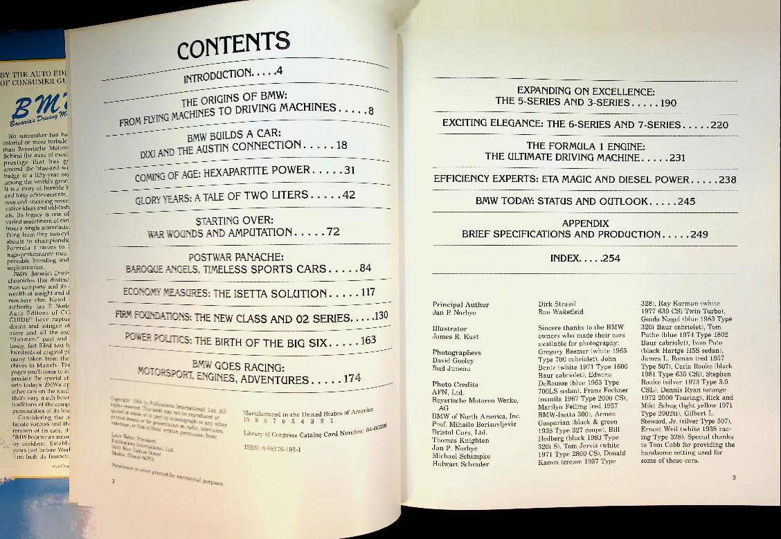 Norbey, J.P.: 1984 USA, hardcover with dust jacket, 256 pages, with photos. A comprehensive history of BMW, covering the company's evolution of the cars from 1928 to 1984 and highlighting its reputation for engineering high-performance and innovative vehicles designed for driving excitement. The book chronicles both the challenges and successes of BMW, providing detailed accounts and photographs of its iconic cars. ISBN 9780517424643 / 0517424649 In very good condition