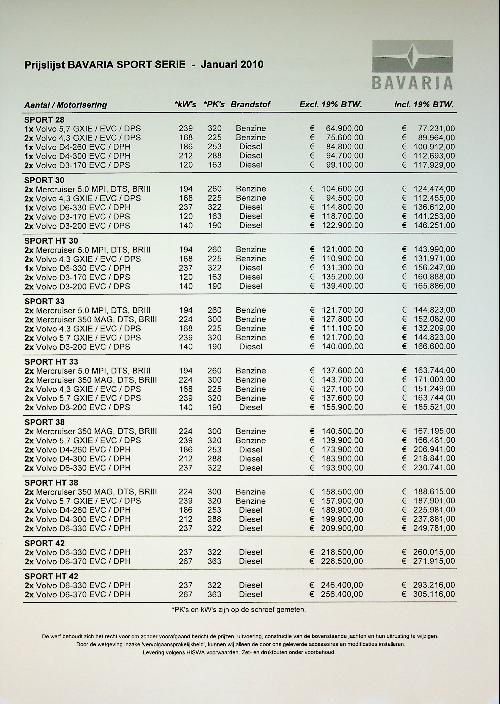 Bavaria: 2010, softcover 4 blz., met alle prijzen van de modellen en de opties. Daarnaast de standaard uitrusting in detail. In zeer goede staat