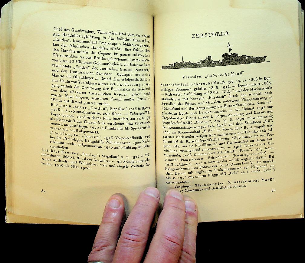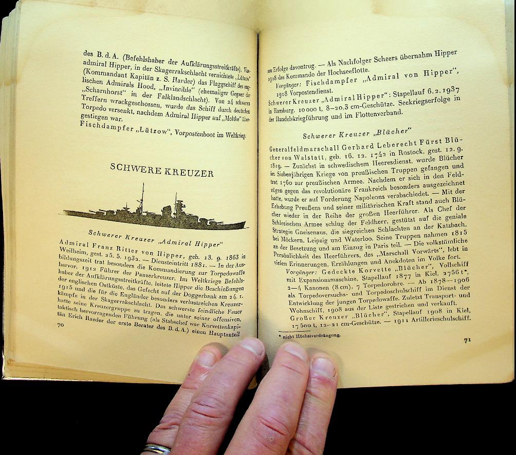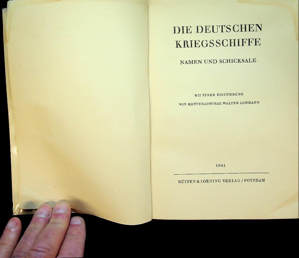 Collective: 1941 Germany, softcover, 144 pages, illustrated. An illustrated reference work that lists German warships with brief notes on their names, types and fates up to the early Second World War. It serves as a compact, propagandistically framed overview for contemporary readers, introduced by Rear Admiral Walter Lohmann and published by Rütten & Loening in Potsdam. small marks of use, in good condition