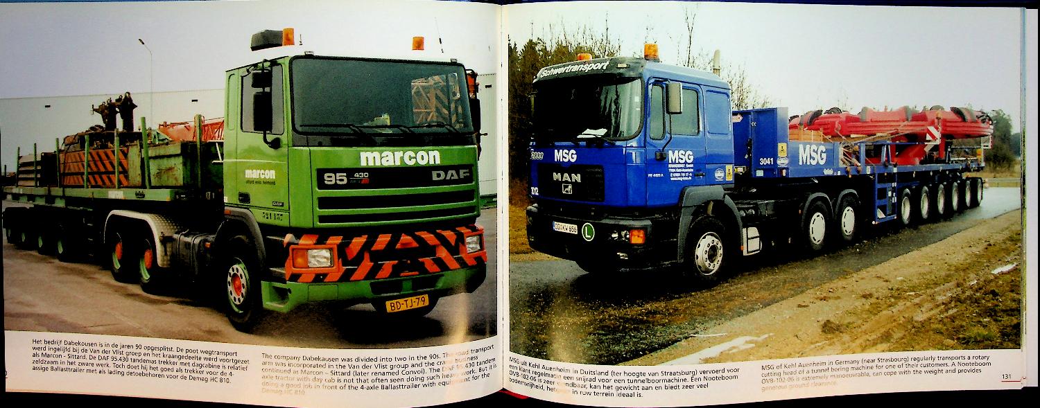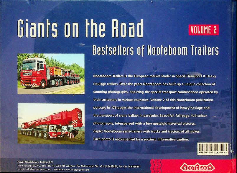 Woestijne, Adri van de: 2004, hardcover, 168 pages, illustrated. Giants on the Road, volume 2 by A. van de Woestijne is a photo book about special and heavy Nooteboom trailers, showing the most striking combinations as bestsellers in extensive images. The book contains richly illustrated pages with Dutch and English captions about the special transport vehicles. In very good condition