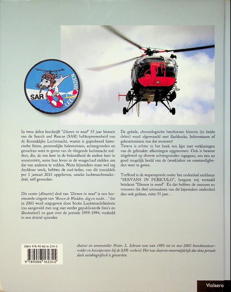 Schram, P.L.: 2015 Lanasta, hardcover, 320 blz., geïllustreerd. Dienen in nood 1. Het vliegende reddingsteam van de KLu 1959-1994 vertelt de geschiedenis van de eerste decennia van het 303 Search and Rescue Squadron, vanaf de opbouw met Alouette III-helikopters tot vlak voor de introductie van de AB-412. Het boek van Pieter L. Schram combineert chronologische hoofdstukken met veel foto’s en persoonlijke verhalen van bemanningsleden, en laat zien hoe het kleine SAR-team onder vaak zware omstandigheden levens redde boven zee en land. ISBN 9789086162345 In zeer goede staat