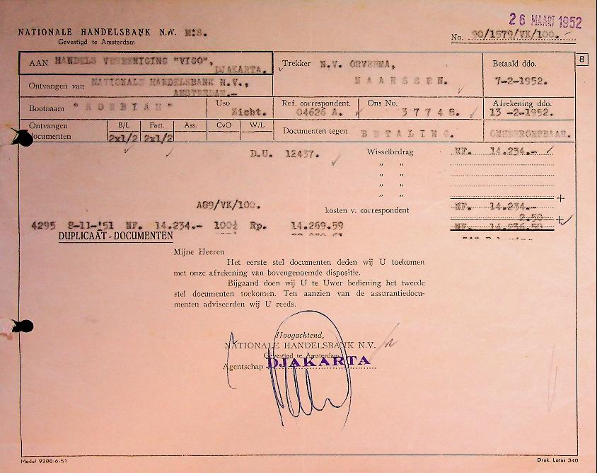 Connossement SMN ss Roebiah